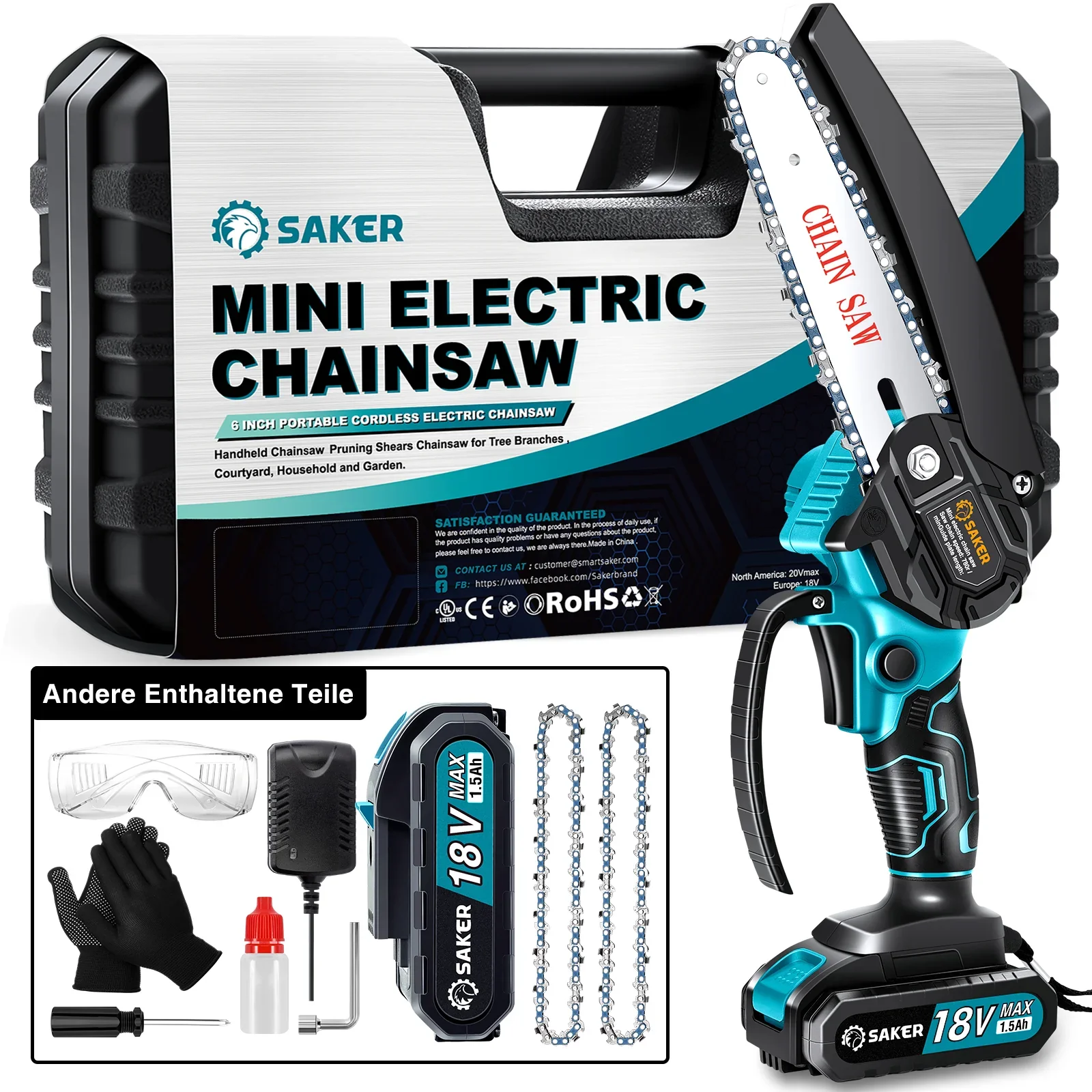 Saker ist eine Werkzeugmarke mit den professionellsten Designern und Betriebsteams, die sich verpflichtet hat, Familien die einfachen und freundlichen Werkzeugprodukte anzubieten. Ganz gleich, welche Art von Tools Sie benötigen, Saker kann Sie bereitstellen. Das ist unser Slogan. Diese Kettensäge ist auf maximale Mobilität ausgelegt und eignet sich für enge, schwer zugängliche Stellen, sodass Äste und dicke Bürsten problemlos arbeiten können. Diese tragbare Kettensäge ist schnurlos und wiederaufladbar, die Kette ist hitzegehärtet und schneidet mit einer Geschwindigkeit von bis zu 6M/S und schneidet so geschmeidig wie Butter. Es erledigt Aufgaben in Rekordzeit – ohne Rauch. SO EINFACH, DASS SIE ES MIT EINER HAND MACHEN KÖNNEN EIGENSCHAFTEN: 【STARKES DYNAMISCHES SYSTEM】 - Die Saker Mini-Kettensäge passt eine hochwertige Führungskette an, die einem tiefen Abschreckprozess unterzogen wurde, um einen reibungslosen Schnitt zu gewährleisten. Außerdem kommt ein reiner Kupfermotor zum Einsatz, der sehr leistungsstark ist. Schneidleistung ist höher und schneller. 【LEICHT UND TRAGBAR】 - Die Saker Mini-Kettensäge wiegt nur 1,1 kg (einschließlich Akku) und hat eine Gesamtlänge von 4 Zoll. Es kann mit einer Hand verwendet werden und es ist nicht leicht, nach längerem Gebrauch müde zu werden. Es eignet sich sehr gut für Familien- und Zeitarbeit. 【WIEDERAUFLADBARE ELEKTRISCHE KETTENSÄGE】 - Die Saker Mini-Kettensäge ist mit einem wiederaufladbaren Lithium-Akku mit 18 V und 1500 mAh ausgestattet, der lange verwendet werden kann. Aufladen jederzeit, bequem und schnell. 【EINFACH ZU TRAGEN】 - Obwohl der Koffer klein ist, kann er das gesamte Zubehör perfekt verstauen. Klein und praktisch, schnell und einfach zu montieren, benötigen Sie nur 1 Minute für die gesamte Installation. EINZELHEITEN: Hochwertige Kette - Die Saker Mini-Kettensäge verwendet eine hochwertige Führungskette, die einem tiefen Abschreckprozess unterzogen wurde, um einen reibungslosen Schnitt zu gewährleisten. Und es wird ein leistungsstarker reiner Kupfermotor verwendet. Schutzleitblech - Es kann verhindern, dass Holzspäne spritzen. Wenn Sie Äste über Ihrem Kopf schneiden, würden diese Sägespäne auf die Schallwand treffen und nicht zurück in Ihr Gesicht kommen. Machen Sie Ihre Arbeit sicherer. Komfortabler Griff – Die Saker Mini-Kettensäge ist ergonomisch gestaltet. Kann mit einer Hand verwendet werden, und es ist nicht leicht, nach längerem Gebrauch müde zu werden, selbst ältere Menschen können es leicht kontrollieren. Wiederaufladbarer Akku - Unsere Kettensäge ist mit einem 18V,1500mAh Akku für Akkuwerkzeuge mit Ladegerät ausgestattet, der lange verwendet werden kann. Sein Ladesystem schaltet sich ab, wenn der Akku seine volle Kapazität erreicht hat. SPEZIFIKATIONEN: Netzteil: EU-Stecker Akkutyp: Lithium-Ionen Pferdestärke: 550 Watt Spannung: 18V Akkukapazität: 1500mAh Ladezeit: 2 Stunden Nutzungszeit: 2-4 Stunden Motor Geschwindigkeit: 15000PRM Kettengeschwindigkeit: 6M/S Kettenlänge: 4 Zoll/10Cm, 6 Zoll/15Cm Maximale Schnittstärke: 4 Zoll/10Cm, 6 Zoll/15Cm Dezibel: ≤85DB Kettenmaterial: Stahllegierung GS Zertifizierung Zertifikatsnr. S 50461022 HINWEIS Bevor Sie die Mini-Kettensäge benutzen, laden Sie sie bitte vollständig auf. Der Akku leuchtet rot, wenn er geladen ist, und grün, wenn er vollständig geladen ist. Entfernen Sie den Akku, bevor Sie die Kettensäge überprüfen oder reparieren. Die Kette ist scharf, berühren Sie sie nicht, um Verletzungen zu vermeiden.Bitte achten Sie auf die Laufrichtung der Kette (nach dem Einbau, von unten auf das Führungsblech gesehen, stimmt der Sägezahn). Überprüfen Sie die Spannung der Kette (zu locker: das Sägeblatt vibriert und die Schnittleistung ist schlecht; zu fest: das Sägeblatt hat einen hohen Widerstand und der Schnitt ist langsam) Ölpflege ist vor und nach dem Gebrauch erforderlich, um Rost zu vermeiden. Reinigen Sie die Kette mit einer Bürste und schmieren Sie sie. (Es kann auch Speiseöl verwendet werden) Wenn das Sägeblatt stagniert und der Schnitt langsam wird, ersetzen Sie bitte rechtzeitig die neue Kette. Es ist normal, dass die Kettensäge während des Gebrauchs Funken erzeugt. Aus Sicherheitsgründen sollten Sie den Akku abklemmen, wenn Sie die Kettensäge nicht benutzen. Der Akku kann bei voller Ladung 2-4 Stunden für tägliches intermittierendes Schneiden verwendet werden. Die Kettensäge verfügt über einen Überlastungsschutz und eine Temperaturkontrolle. Wenn die Motortemperatur 120°C übersteigt, schaltet er automatisch ab, um den Motor vor Schäden durch hohe Temperaturen zu schützen. Schneiden Sie mit der Kettensäge kein Holz außerhalb der Spezifikation (mehr als 10 cm dick). GARANTIEN ✔️ Sichere Zahlung - Risikofreie Zahlung über SSL-gesicherte Zahlungsanbieter. ✔️ 30-tägige Rückgabegarantie - sollten Sie mit Ihrem Produkt nicht zufrieden sein? Dann können Sie es innerhalb von 30 Tagen zurückgeben und bekommen den vollen Betrag erstattet.