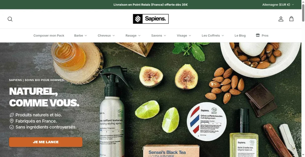 Sapiens, le Barber Shop made in France qui s'inquiète de votre santé. Produits ultra sains, pensés pour vous et sans concession sur la qualité.