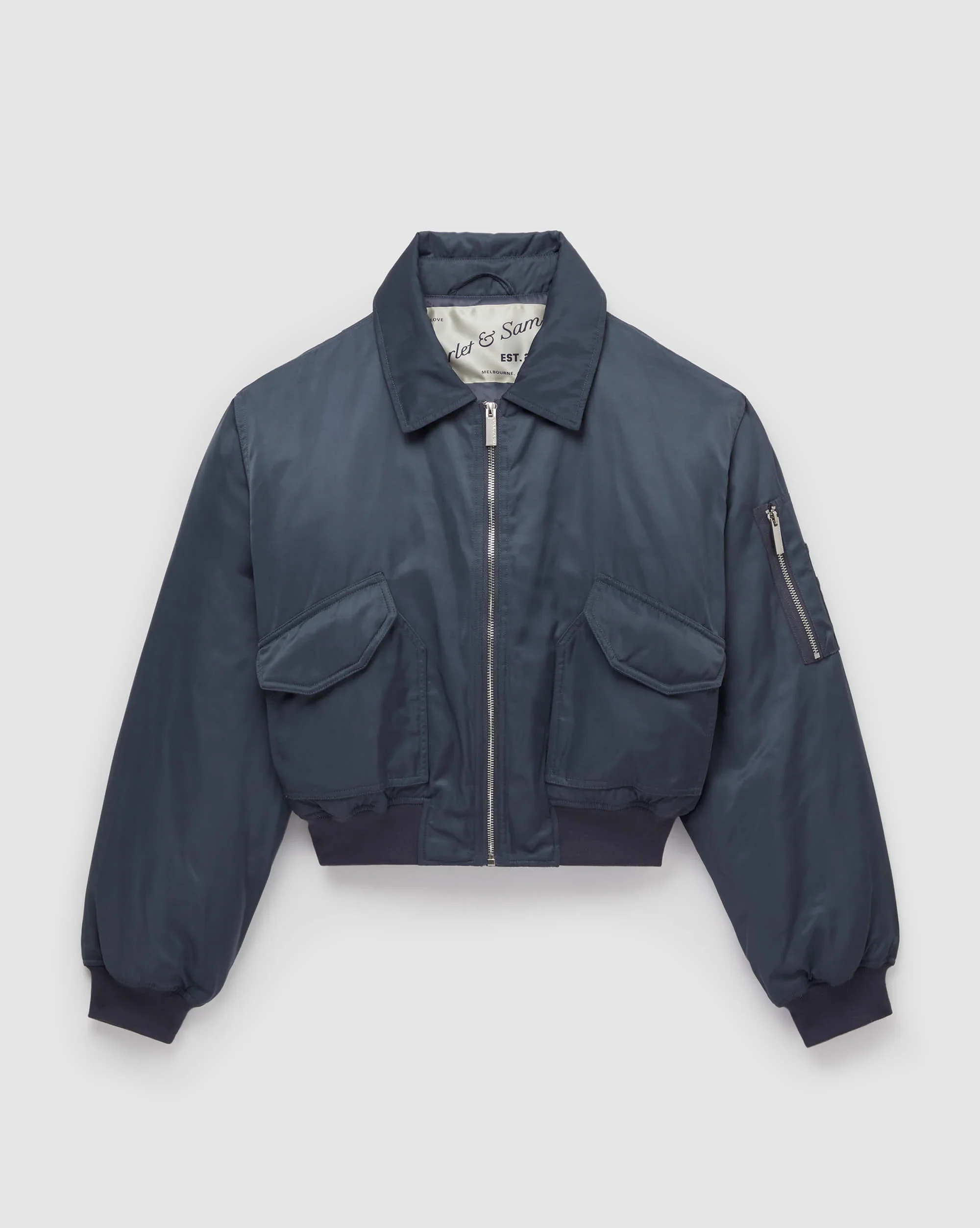 The Capsule Bomber in Charcoal is a warm, padded essential with a boxy, cropped fit making it an everyday elevated silhouette. Featuring ribbed hems, utility-style pockets, and a structured collar, it’s designed to be your go-to layer.