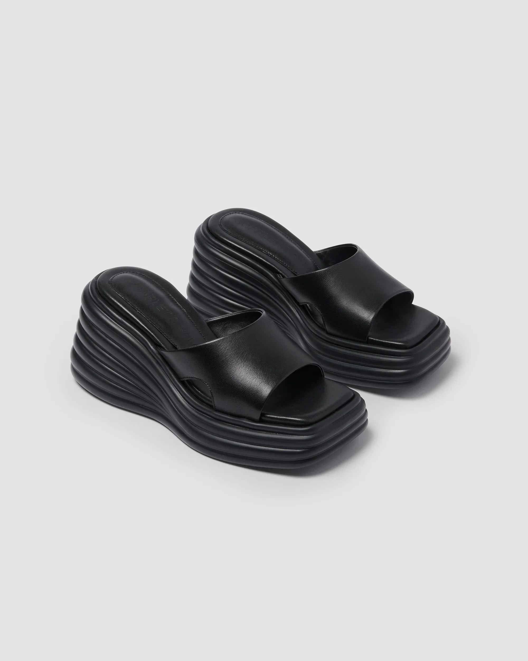 The Juicy Wedge in Black, featuring a chunky silhouette, square toe and platform wedge, the Juicy is the ultimate year-round staple shoe.