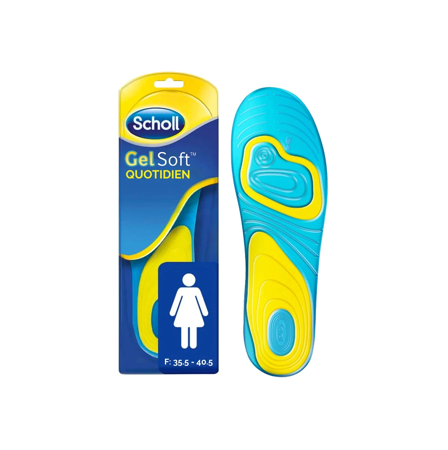 Des semelles qui vous offrent une absorption des chocs, un amorti haute performance* et assure une répartition efficace des impacts et de la pression lors de vos activités quotidiennes. *Par rapport au port de chaussures sans semelles Absorbe les chocs tout au long de la journée Effet amortissant Design ergonomique qui assure une répartition efficace des impacts et de la pression Pointures : 35,5-40,5 (Femmes) En savoir plus Pourquoi utiliser les semelles Scholl GelSoft Quotidien ? Son duo de gel vous assure une absorption efficace des micro-chocs pendant la marche ou lors de vos activités quotidiennes. Son gel très ferme vous offre un fort soutien de la voûte plantaire et des talons tandis que son gel plus moelleux vous procure un amorti des chocs.