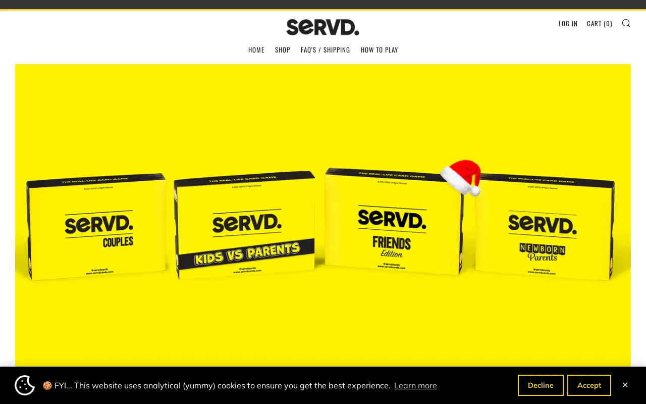 **UPDATED** BIGGER, BETTER COUPLES DECK! Forget everything you know about card games – SERVD gamifies everyday life and takes scenarios that come up between you and your partner and turns them into hilarious actions in a card game. Ultimately injecting some fun, cheekiness, and strategy into all types of situations! THE GAME : SERVD is about spontaneity and playing cards when your opponent least expects it. Timing is everything. From giving you the power to drag your partner along to your favourite recreational activity to stealing their meal should it come out looking tastier than yours. SERVD turns your life into the playing field. THE RULES: Agree to a timeframe (E.g. a week, a month, 6 months). Split the cards up with each player having their own set of unique cards. Start dishing out cards whenever and wherever you need. WHAT’S IN THE SERVD DECK? 62 life-changing relationship-based cards, granting both players 31 chances to force each other into doing a variety of wonderful things. Cards can also be counteracted, played on top of each other, and shut down. Players can tailor certain cards to suit their relationship. Over 14,000 ⭐⭐⭐⭐⭐ 5 STAR reviews. Number 1 ranked Buzzfeed Valentine’s Day gift for couples. 2 Players only | Adults 18+ advised Can be played by ALL couples including hetero, gay, lesbian and non-binary. When it comes to couples games, SERVD is an absolute banger! No matter how long you’ve been together, SERVD will be sure to add even more fun, laughter, and craziness into your household. What could possibly go wrong? SERVD. Play or be played SHIPPING: United States Decks available for purchase via Amazon.com. United Kingdom Decks available for purchase via out UK website or Amazon.co.uk. Europe Decks available for purchase via your local Amazon. Canada Decks available for purchase via Amazon.ca. Australia & New Zealand Available via our AU/NZ website or Amazon.com.au. Rest of the world Decks available for purchase via Amazon.com.