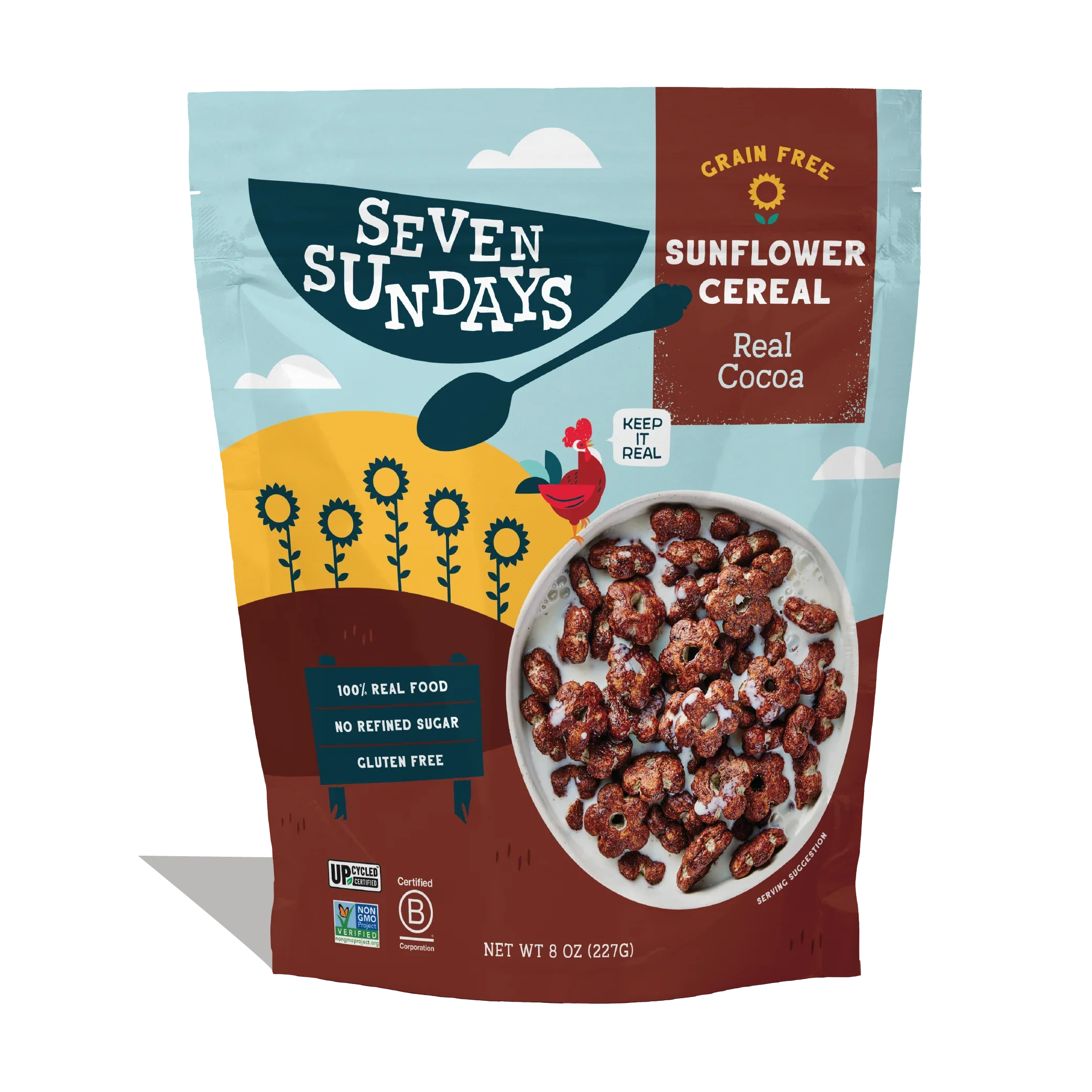 It’s time for the cereal aisle to Get Real. Our Sunflower Cereal has nothing but real food in it – no magic, no tricks, no cuckoo. It has a pretty cool story too that starts with upcycled sunflower seeds that are high in protein and fiber, so it’s not only good for you, it’s good for the darn whole planet. Included in the variety pack: Real Cocoa • Real Berry • Maple Sea Salt