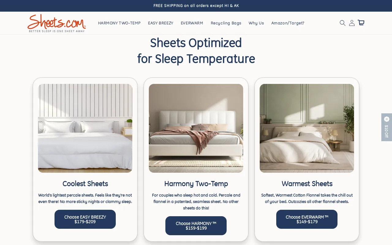 Sheets.com provides the friendliest sheets in the world. Bed Sheets with Patented Warm and Cool Halves giving you Guaranteed Sleep Temperatures You'll Both Love! Bed Sheets Guaranteed the Warmest, Softest Cotton by Far. Bed Sheets Guaranteed the Lightest, Most Breathable You'll Ever Own.