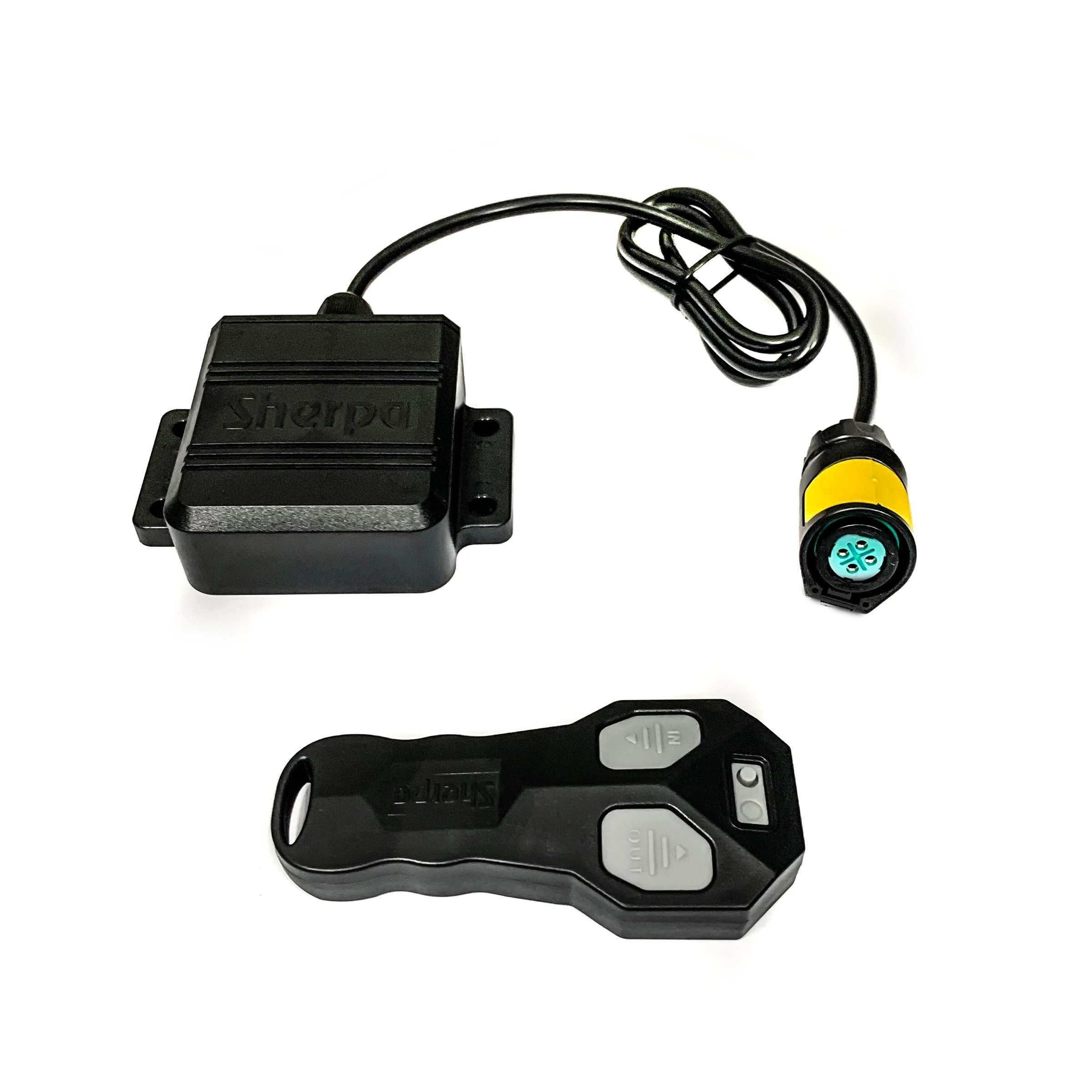 Plug n Play. Wireless receiver uses the same port as the Sherpa wired hand remote. Allows the user to move freely with the winch rope or cable. Great for winch recoveries when caught by yourself. No need to run the wired control cables back into the cabin. Sherpa 'Plug n Play' Wireless Remote Kit The ultimate in reliability, store the receiver and remote inside your vehicle! We've tried many models of inbuilt wireless remotes and all fail when submerged in water Plugs directly into the port on your Sherpa winch control box Receiver requires no batteries as it utilises the wired hand controller power supply when connected. Works on 12V or 24V winches, as well as 9,000Lb, 12,000Lb, 17,000Lb & 25,000Lb models. Also compatible with the Sherpa boat winches. (Not compatible with ATV winches) Weatherproof, Shock-Resistant housing. Note - Sherpa can only supply these wireless remote kits to customers purchasing a new Sherpa 4x4 winch or to customers who have already purchased a Sherpa 4x4 winch and wish to retrofit the unit. These are not compatible with other brands of winches. Not suitable for retrofitting to Sherpa winches prior to 2020. Specifications: Working Distance - up to 65ft (20m) Lead Length - 2'7" (80cm) IP Rating - IP68 Enclosure Warranty - 12 Months