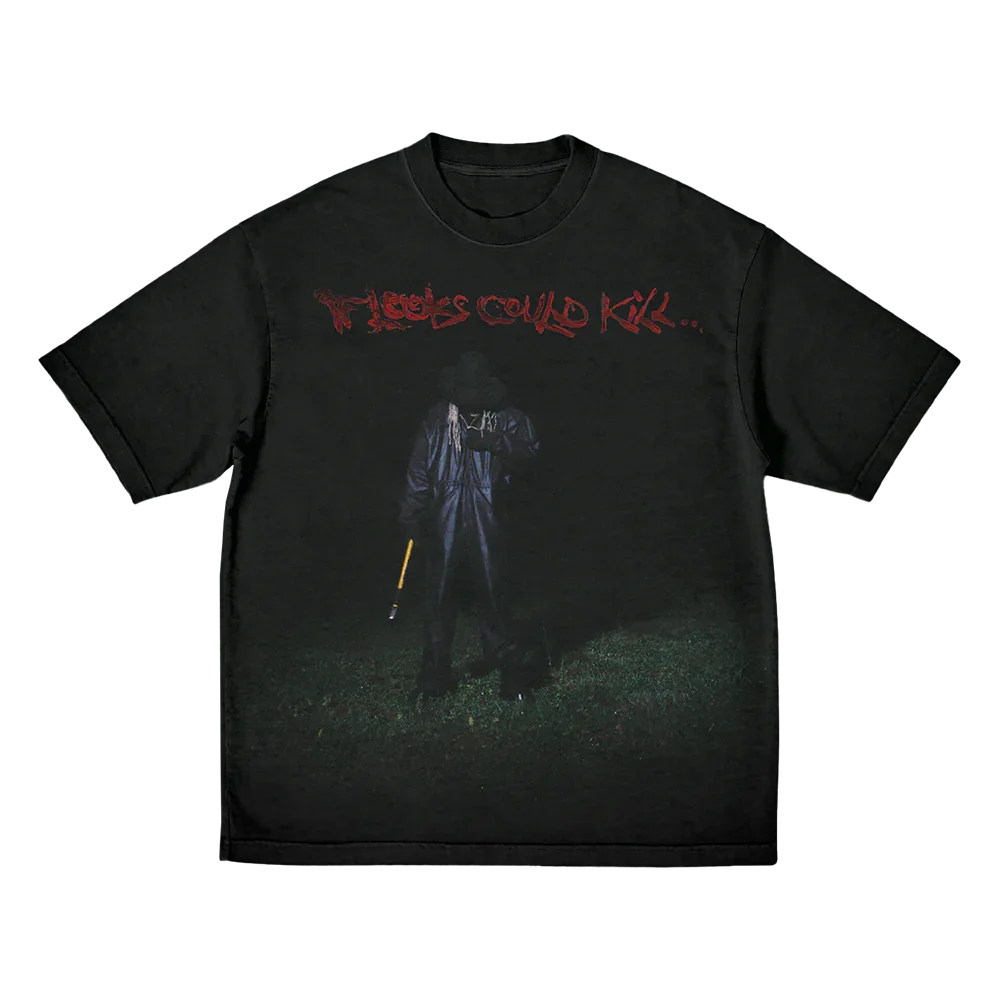 Spotify Wrapped Exclusive: Graphic "If Looks Could Kill" t-shirt in washed black.