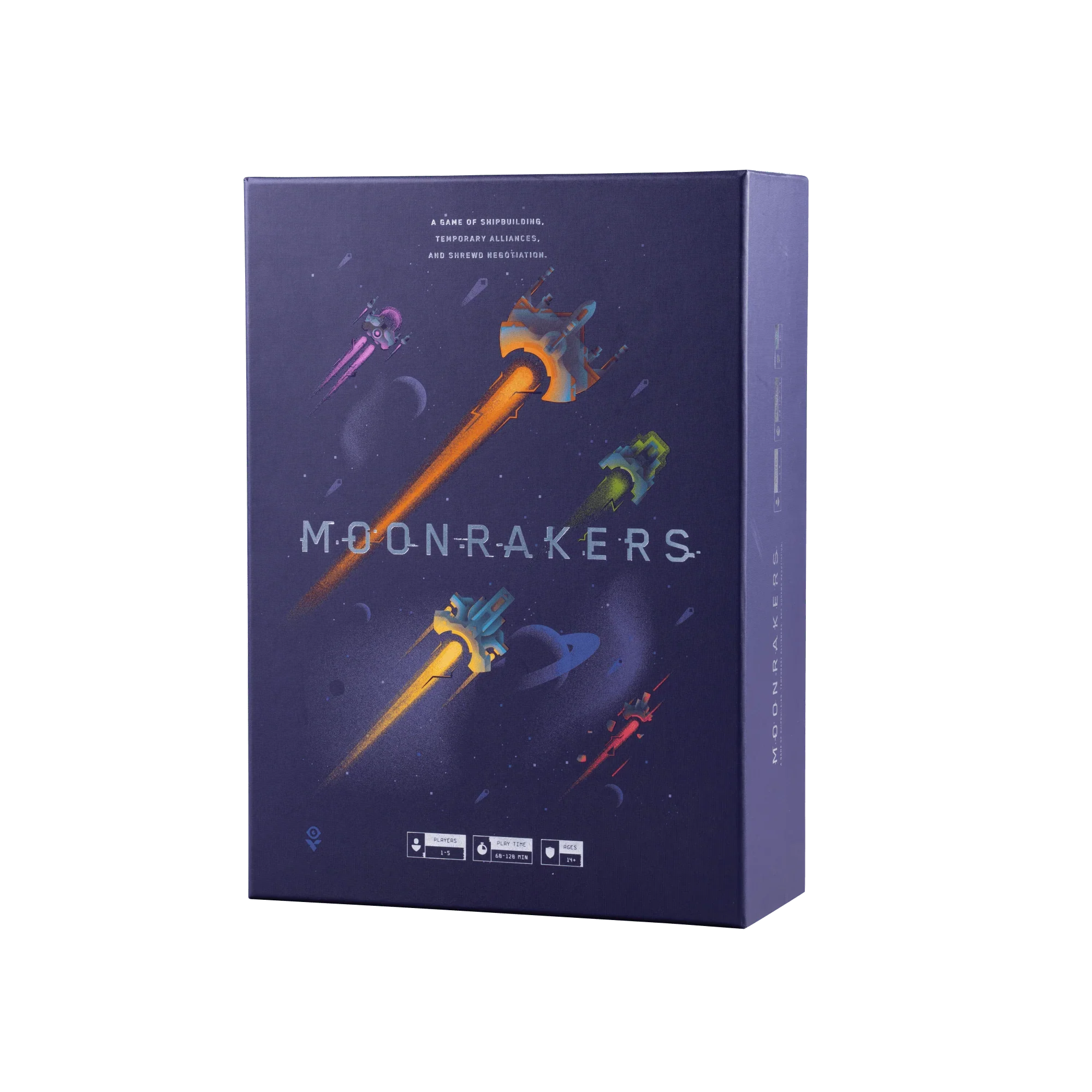 Tired of games where you wait your turn? Moonrakers keeps everyone engaged with constant table talk, shrewd negotiation, and ever-shifting alliances. Build your ship, form (and break) pacts, complete contracts, and race to 10 prestige in a sci‑fi deck‑builder unlike any other. Premium components—metal coins, PVC ships, linen boards—make every game feel epic. Ready for edge‑of‑your‑seat fun?
