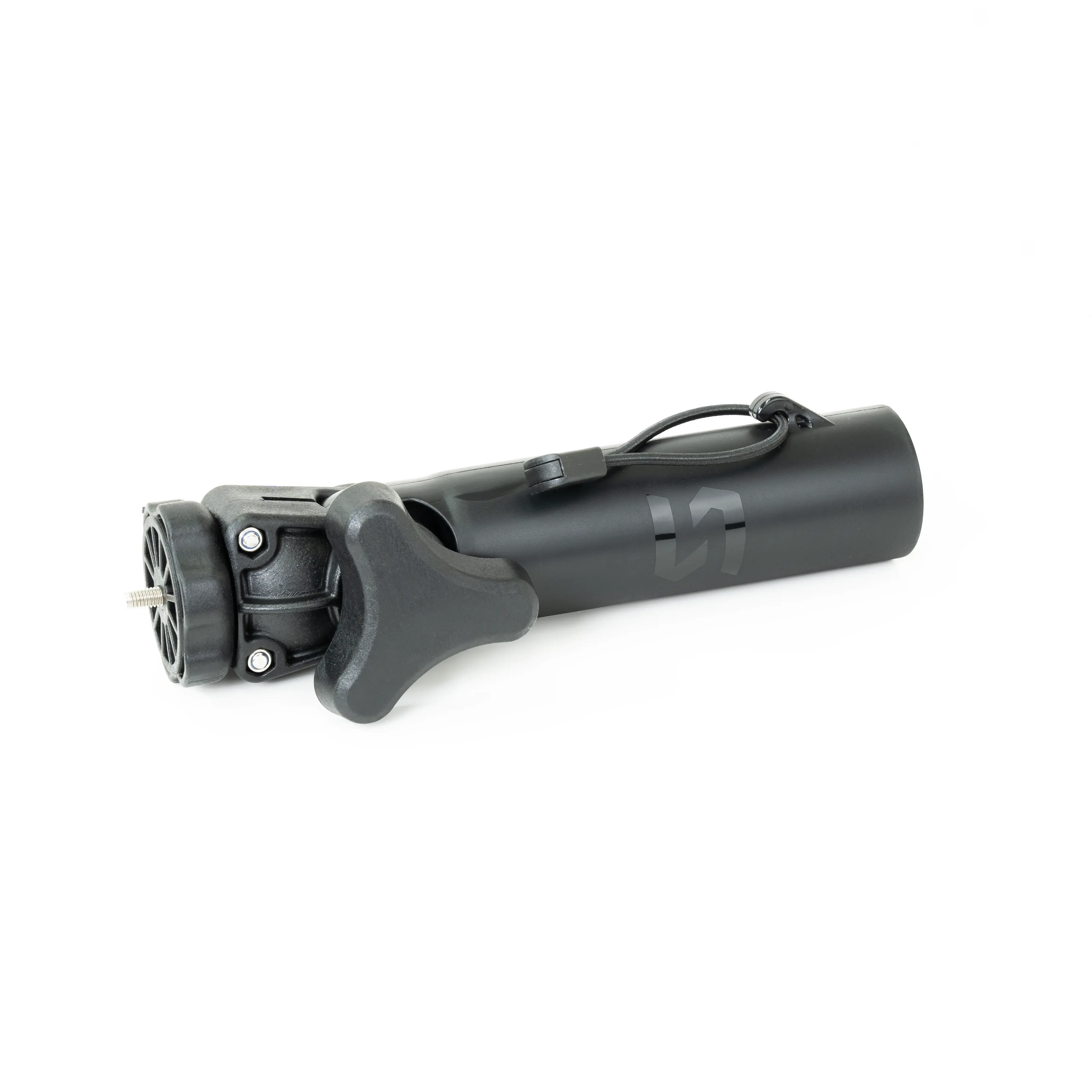 Q Series, R Series & VERTX Adjustable Umbrella Holder Fits to the handle of the Q Series, R Series & New VERTX Remote (not X Series, V10 or F Series). The Adjustable Umbrella Holder allows you to easily adjust the direction of your umbrella both for angle and 360 degree rotation. It also raises the umbrella approximately 80mm compared to the standard umbrella holder tube. Adjustable for direction and rotation 42mm inside diameter tube 140mm inside depth Bungee to hold the umbrella inside the tube Fits to the Stewart Golf Q Series, R Series and VERTX Remote. PLEASE NOTE: This umbrella holder is not designed to hold an umbrella while the trolley is in motion, indeed for many users it will be too low to achieve this. It is designed as a place to put an umbrella while you take a shot. This is a safety precaution designed to remove the chance of the trolley becoming unstable when used in windy conditions, as a remote control or follow machine could be a distance away from the user when in motion.