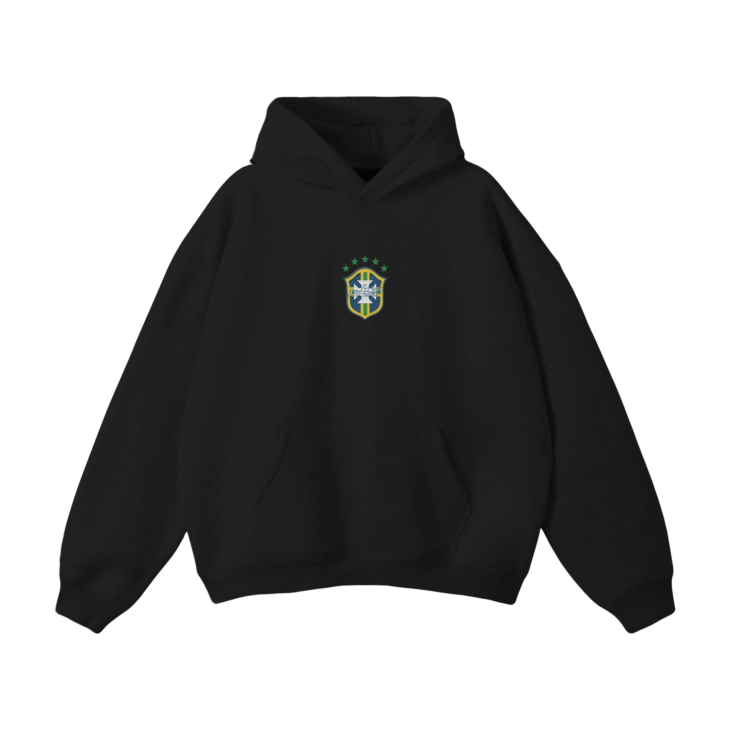 The iconic 2004 R10 Brazil Jersey reimagined as a luxury oversized hoodie. Printed on premium cotton with a boxy fit, it blends iconic football heritage with elevated streetwear. IN STOCK & READY TO SHIP. Every item inside of our BRAZIL collection comes with free Joga Bonito inspired trading cards.