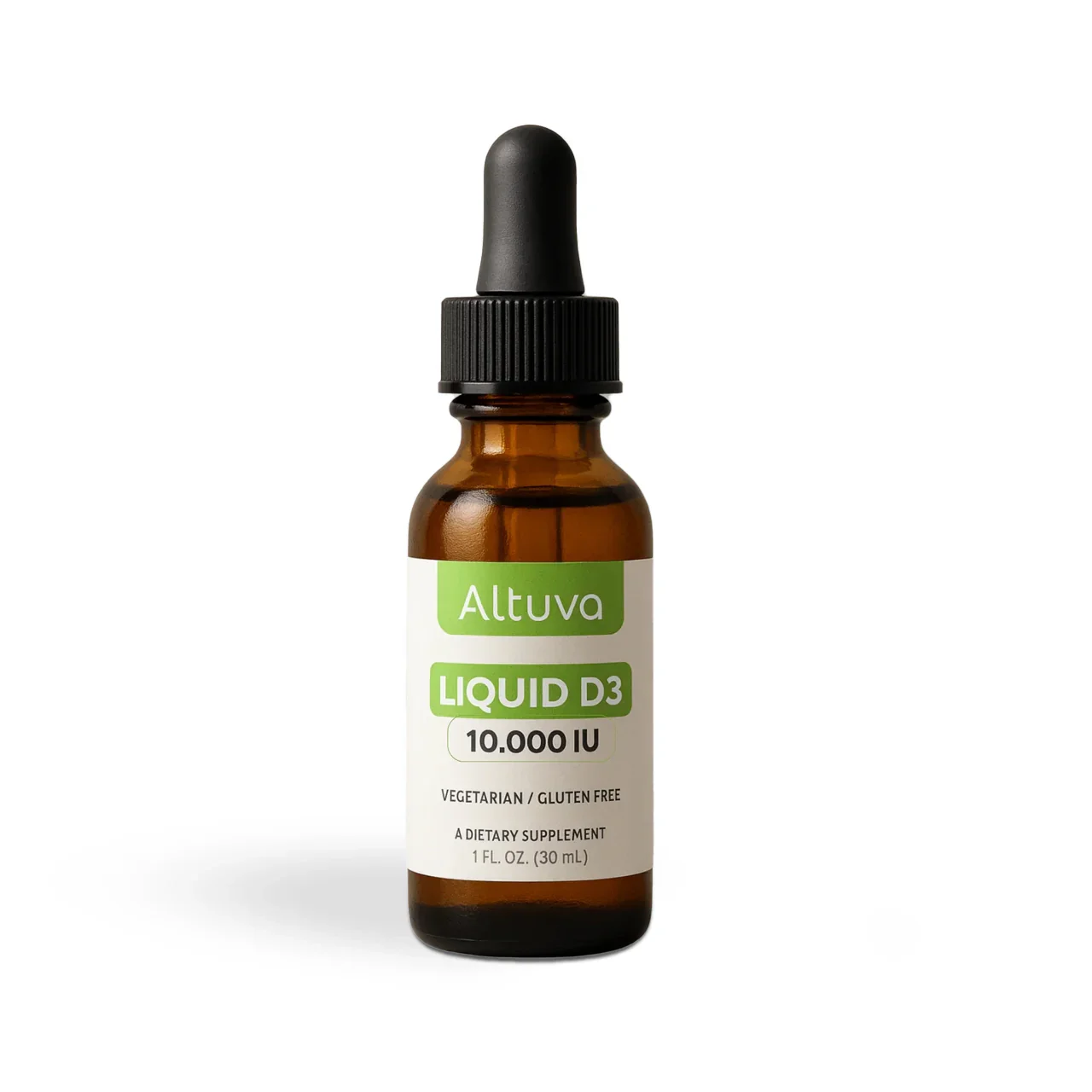 Feeling low on energy, mood, or immune support? You might be missing the sunshine vitamin ☀️ Why Choose Altuva Liquid D3 10,000 IU? Delivers a powerful 10,000 IU of vitamin D3 per serving* Supports a strong and healthy immune system* Promotes cardiovascular wellness and heart health* Helps maintain strong bones and healthy teeth* Supports brain function, focus, and cognitive clarity* Typically recommended under a healthcare provider’s guidance* Are You Getting Enough Vitamin D? If you spend most of your time indoors, use sunscreen regularly, or live in areas with limited sunlight—especially during winter—you may not be getting the vitamin D your body needs. Older adults and individuals with higher body mass index may also struggle to absorb enough from the sun alone. Vitamin D is essential for bone strength, immune defense, heart health, and brain function.* Unfortunately, deficiency is more common than you might think—but it doesn’t have to be. Altuva Liquid D3 10,000 IU offers a high-potency solution in a convenient, citrus-flavored liquid form that’s easy to take and great-tasting. While this higher dose is typically used short-term under practitioner guidance, the liquid format allows for flexible dosing—choose from 2,500, 5,000, 7,500, or the full 10,000 IU as needed.* Immune System Support* Vitamin D plays a vital role in activating immune cells like T-cells and macrophages. It also supports respiratory health and helps the immune system respond to seasonal challenges by keeping defenses strong at the cellular level.* Cardiovascular Health* Vitamin D is a powerful ally for your heart. It helps maintain blood pressure within a normal range and supports the health of your vascular system—providing peace of mind when it comes to your cardiovascular wellness.* Bone Strength & Calcium Absorption* Vitamin D is critical for calcium balance and bone health. It supports the absorption of both calcium and phosphorus—two minerals essential for building and maintaining strong bones and teeth. Keeping your bones strong helps support mobility and independence as you age.* Cognitive Function & Mental Clarity* Healthy vitamin D levels are closely linked to better brain function, including memory, focus, and mood. As we age, maintaining those levels can help keep the mind sharp and support long-term cognitive health.* Suggested Use: Take 1 ml daily or as directed by your healthcare provider. Shake well before use. ⚠️ Important: Do not take if pregnant, nursing or planning to become pregnant. If you have any pre-existing conditions or are taking any medications consult your healthcare practitioner before using. Individuals taking more than 50 mcg (2,000 IU) per day should have their vitamin D levels monitored. *These statements have not been evaluated by the Food and Drug Administration. This product is not intended to diagnose, treat, cure or prevent any disease. Let the sunshine in—support your immune system, bones, brain, and heart with every drop of Altuva Liquid D3 10,000 IU 🌞