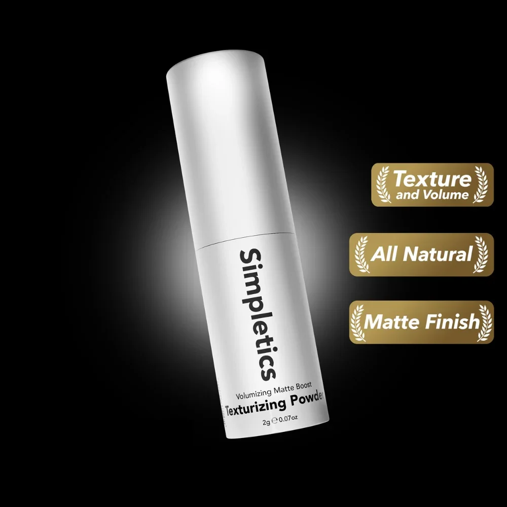 The Simpletics Texture Powder, made with just four ingredients, is your go-to for achieving full, lifted hair with natural texture. This ultra-light formula provides instant volume and grip without any heaviness, perfect for creating a fuller, effortlessly textured look. Ideal for all hair types, it’s especially effective for adding root lift, defining curls, and bringing body to fine hair. A small amount of powder gives a matte, natural finish, letting you style with touchable hold. Simpletics Texture Powder brings you volume and shape in seconds, simply and naturally.
