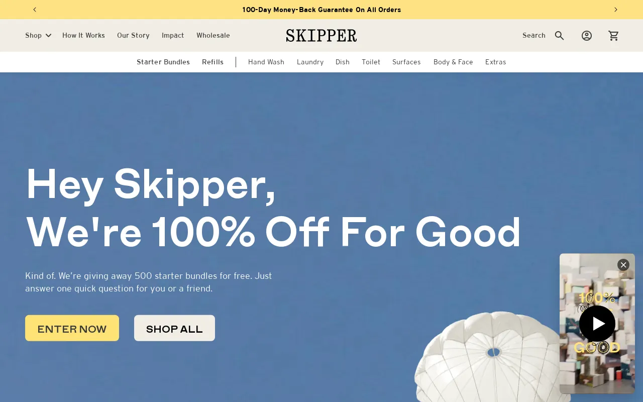 Never heard of Skipper? That makes sense. We started in 2020 (yikes) with two mates, a broken system and some pretty average products. Since then we've been quietly cleaning things up... 🤫 🌊 3 world-first, Aussie made products 🌊 Refillable kits for the entire home 🌊 Over 6 million plastic bottles skipped We try to prove that doing better doesn't have to be complicated... or boring. Peek the good stuff: skipper.org/collections/starter-kits