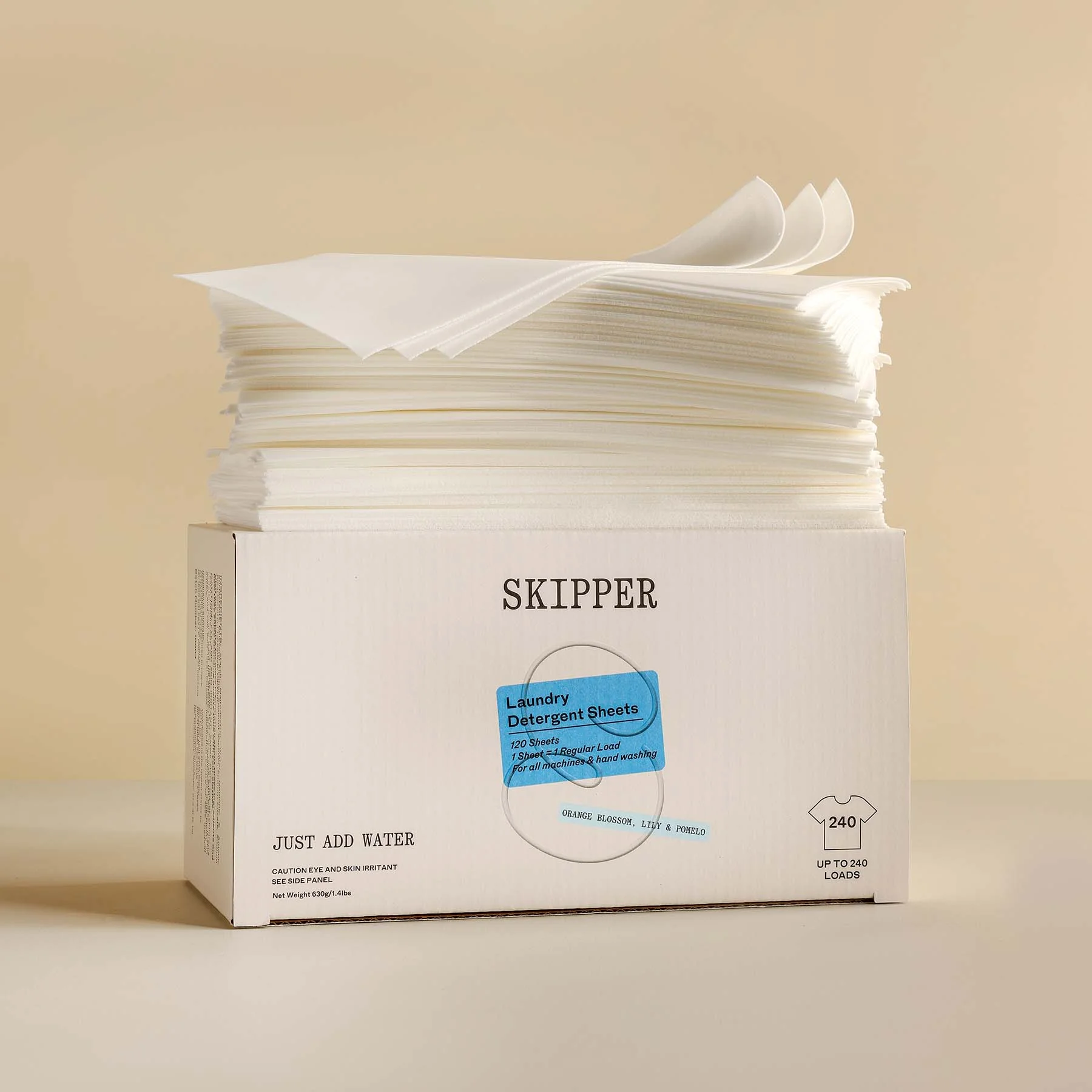 Skipper's laundry sheets have no equal. They're 50% larger with added enzymes, so you only need one. 1/2 sheet = 3.5kg load 1 sheet = 7kg load First-of-its-kind laundry sheet in the world by size and formula Only laundry sheet in the market with humidity-proof storage Dissolves in your hot or cold wash in seconds Suitable for use in all machines & hand washing too Laundry sheets storage tin holds 120 sheets (tin not included) Vegan, cruelty-free and carbon-neutral Throw it in with your clothes and let it work wonders Free shipping in "refill-only" orders Note: With the added enzymes the new formula is not suitable for woollens.