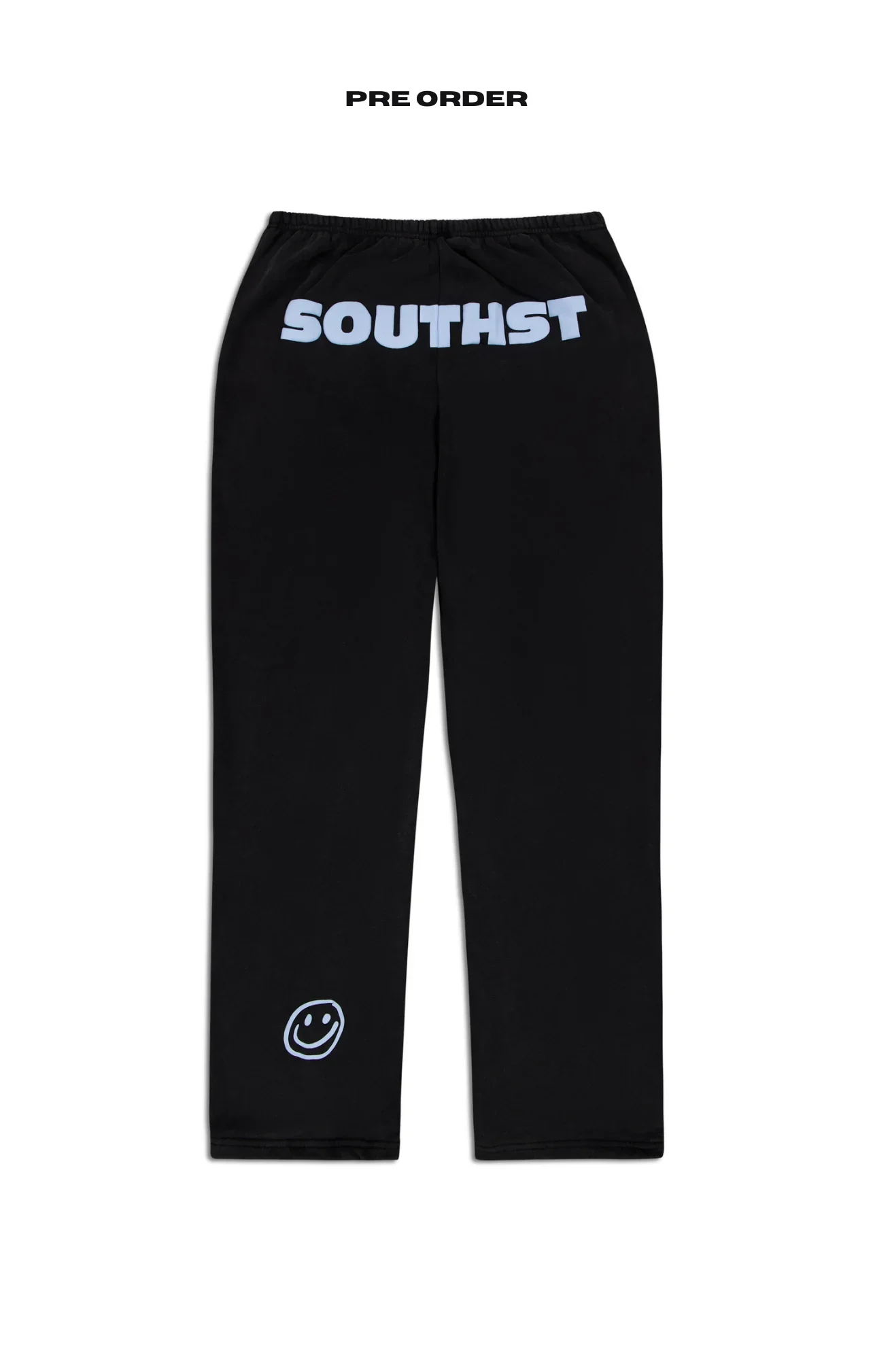 Estimated shipping on or before March 10th - Just in time for Autumn. Unisex sweatpants Straight leg Relaxed fit Colour: Washed black Soft fleece lining 60% cotton, 40% polyester 300 GSM Blue puff print logo's & graphics on front & back Drawstring inside waistband Sizing: Size range XXS-XXL XXS (4), XS (6), S (8), M (10), L (12), XL (14), XXL (16) Sima is a size 6 and 157cm. She is wearing a size XS. Ebby is 184cm and wears an XL. Please note that each batch may be a different shade of black to the last shipment due to the 3x wash process . CMS XXS XS S M L XL XXL LENGTH 108.1 109.4 110.7 112 113.3 114.6 115.9 WAIST 27 29.5 32 34.5 37 39.5 42 HIP 49.5 52 54.5 57 59.5 62 64.5