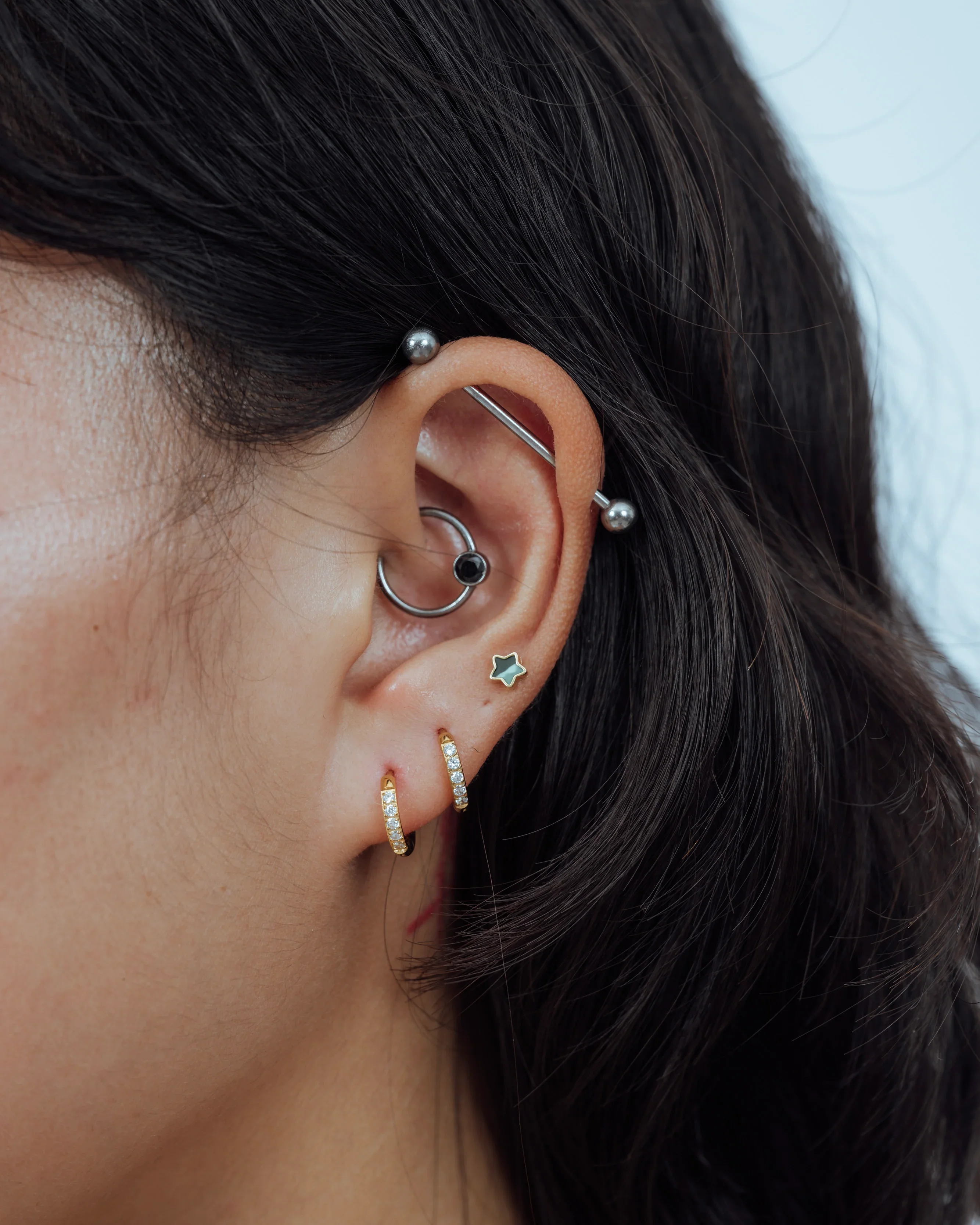 Description: The My Huggies Sparkle Hoop Earrings offer a sleek and minimalist design, hugging your earlobes with effortless elegance. Perfect for daily wear or as a base for your favorite charms, these hoops are a versatile addition to any jewelry collection. Materials: 316L Stainless Steel: Known for its hypoallergenic properties and resistance to tarnish, this durable base metal ensures lasting wear and comfort. 14k Gold: Our premium 14k gold plating provides a luxurious finish that stands the test of time, offering the perfect blend of quality and affordability. Implant Grade Titanium: Our nickel-free and highly biocompatible titanium is lightweight, making it ideal for sensitive skin. Its corrosion resistance ensures long-lasting, comfortable wear, perfect for everyday use. 1. Choose your Huggies 2. Choose your Charms 3. Add the Charm onto your Huggies! Details: - Models are wearing size XXS 8mm - Charms are sold separately and are NOT included with your My Huggies Hoop Earrings
