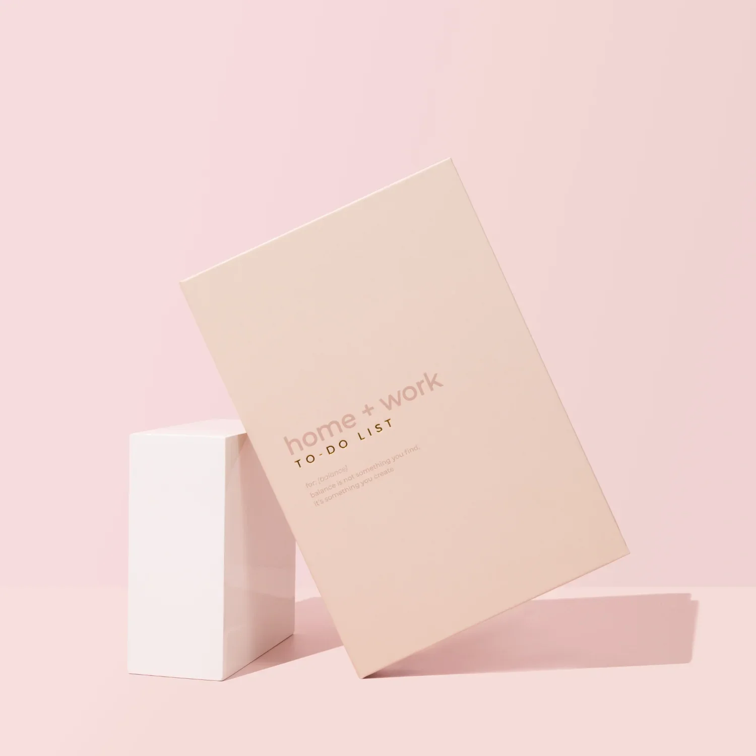 Two worlds, one human. You're multi-faceted, your to-do list should be too! Introducing, the revamped and restyled Home & Work To-Do List. For most of us, it’s impossible to separate the different elements of our lives. When we’re working, we’re thinking about home. When we’re at home, we’re thinking about work. When I’m overwhelmed, the first thing I do is plan it out. That’s why I created the Home & Work to-do list. It allows me to brain dump all my tasks out, and segment them straight into categories. This eases my mental load, makes it easier to prioritise, and helps me stay as focused as possible. FEATURES Easy to use and take with you on-the-go, features easy-to-tear perforated notepads and a protective hardcover design! Bound notebook style to-do list - tough enough to store in your handbag. Stylish duotone design - use the two colours to categorise your to-dos across your to-do list, planner and fridge magnets . 60 page 'Home' To-Do List Perforated Notepad Section 60 page 'Work' To-Do List Perforated Notepad Section 'Other' category - think beyond home and work and set your own to-do categories. SPECIFICATIONS A5 - 143x210mm 60 pages per side, 120 pages total Hardcover with signature gold debossing Terms & Conditions View our Shipping & Handling Information and our Terms & Conditions. International Shipping Rates are available and vary by location.
