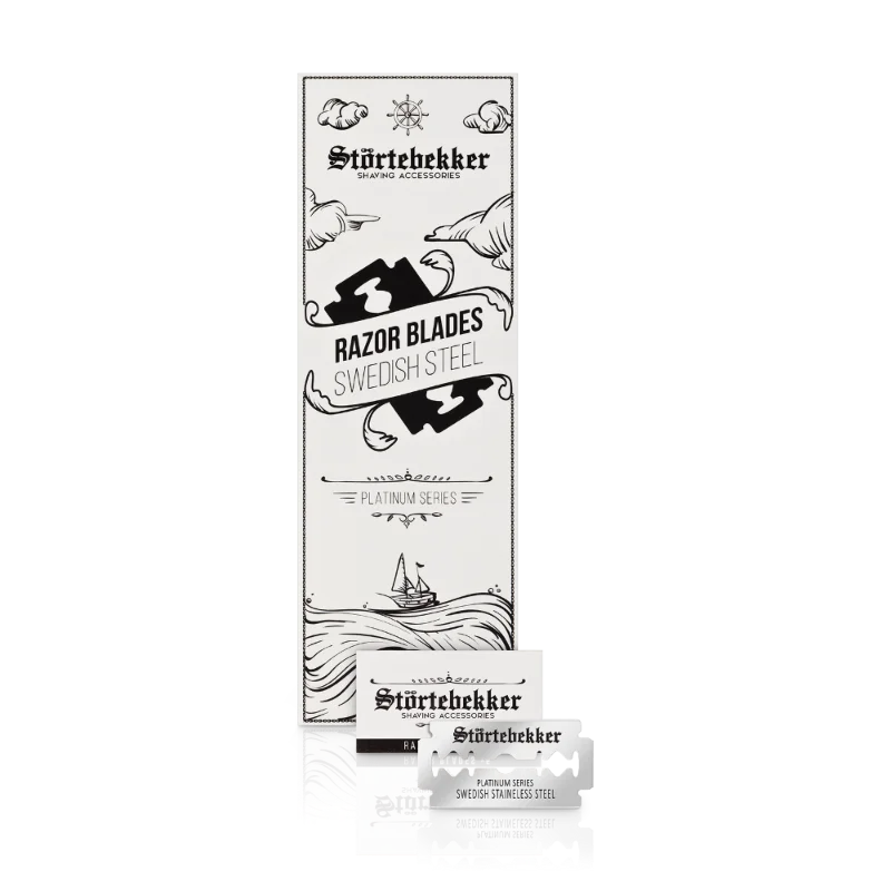 Die Störtebekker-Rasierklingen lassen sich in jedem Rasiermesser und Rasierhobel von Störtebekker verwenden. Mit unseren Rasierklingen ist Dir ein angenehmes & effizientes Rasur-Ergebnis garantiert. Der schwedische Stahl sorgt für optimale Schärfe der Klinge bei zugleich sanfter und präziser Rasur. Ein Päckchen beinhaltet 5 Stück. Wir empfehlen das Wechseln der Klinge nach etwa 2-3 Rasurvorgängen.