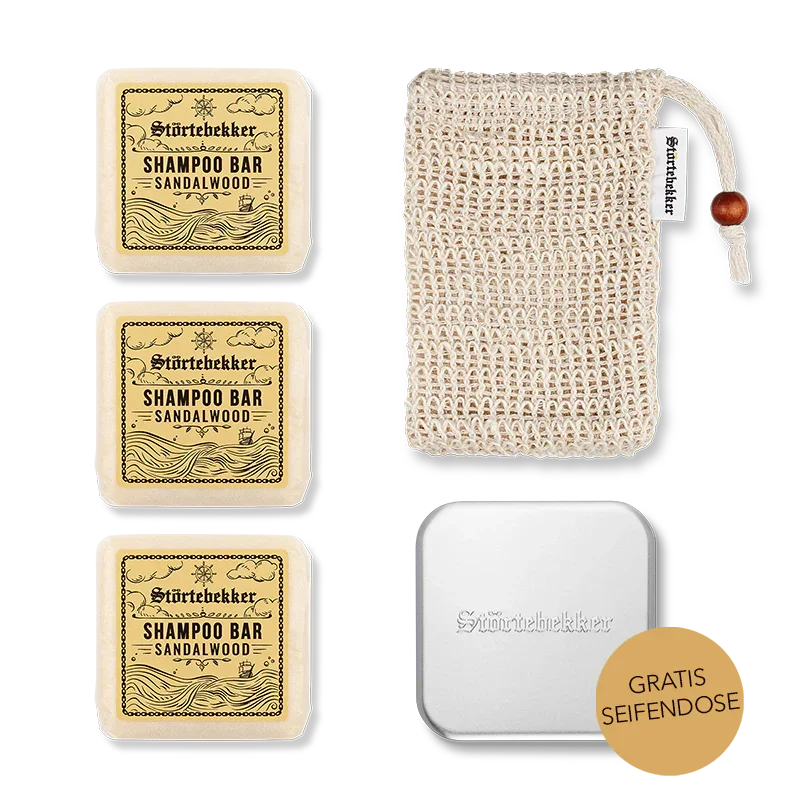 Nie wieder flüssiges Shampoo aus der Plastikflasche! Unser festes Shampoo reinigt Deine Haare, wirkt erfrischend und hinterlässt einen angenehmen Duft nach Sandelholz. Das Haar fühlt sich nach der Dusche genau so an, wie Du es haben möchtest. Die natürlichen Inhaltsstoffe pflegen Dein Haar intensiv und machen es leicht kämmbar und nicht fettend. Dank der handlichen Größe und des quadratischen Designs ist unser festes Shampoo ideal für Reisen und unterwegs. Es kommt ohne unnötige Verpackungen aus und ist somit eine umweltfreundliche Alternative zu herkömmlichen Shampoos in Plastikflaschen. Die Anwendung unseres Störtebekker Shampoos ist denkbar einfach: Du kannst das Shampoo bei m Duschen entweder direkt auf die Kopfhaut auftragen oder es zwischen den Händen aufschäumen und dann in das Haar einmassieren. Massiere das Shampoo sanft in Deine Kopfhaut und arbeite es in die Haare ein, um einen reichhaltigen Schaum zu erzeugen. Spüle Dein Haar gründlich aus, bis das gesamte Shampoo entfernt ist. Bei Bedarf wiederhole den Vorgang. Unser festes Shampoo wird in Handarbeit in einer Seifenmanufaktur in Holland gefertigt und ist plastikfrei verpackt.