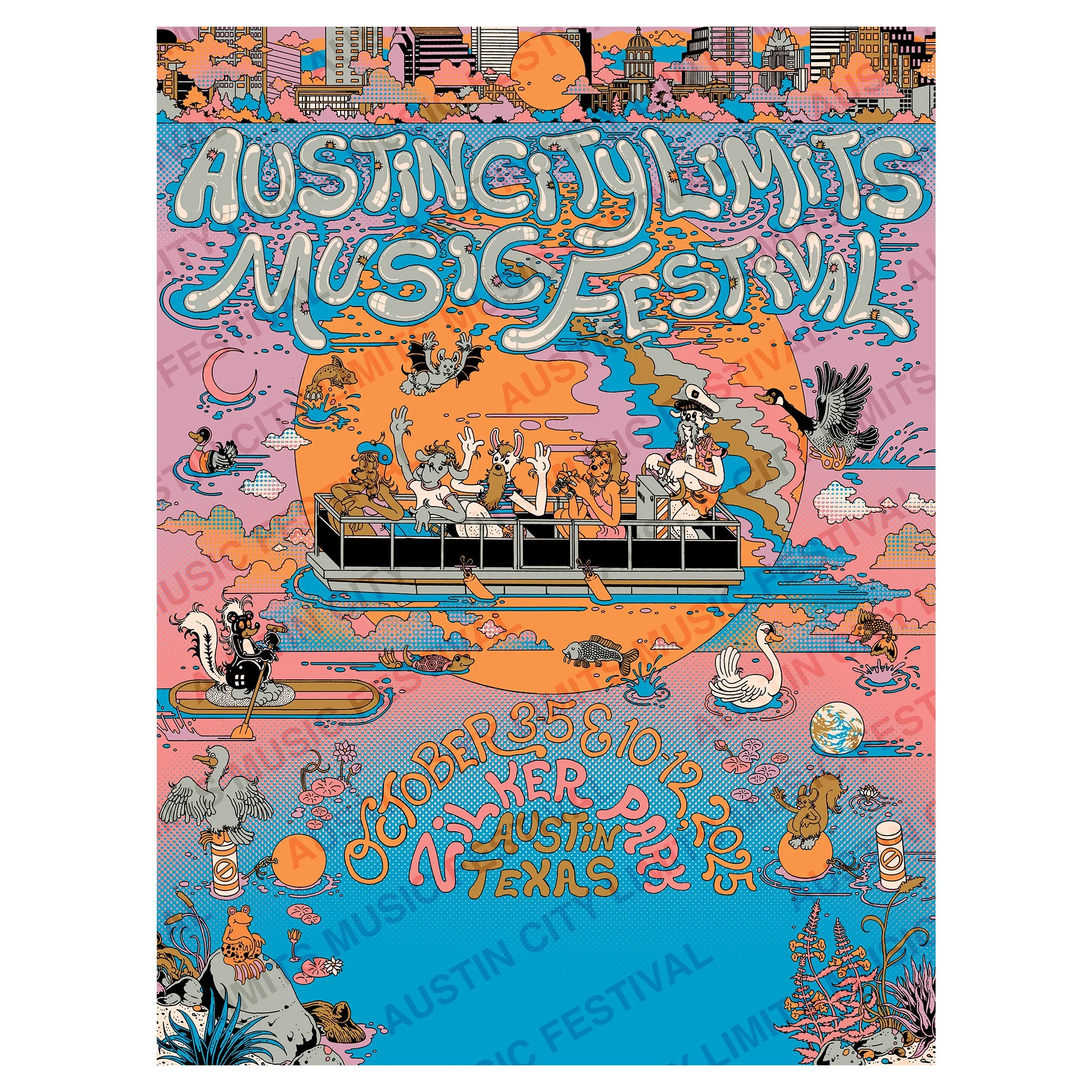We are honored to have Austin’s Fort Lonesome as our 2021 poster artists. Best known for their textile work, Fort Lonesome's founder Kathie Sever poured her love of Western iconography and skill with chain-stitch embroidery into this year’s design. The artwork was inspired by the sunset views that grace ACL Festival and the critters who call the Zilker Park area their home. See below for more details: Offset-printed with four-color process ink on heavyweight, uncoated paper Includes complete band lineup 18” x 24” IMPORTANT INFORMATION: All posters will begin shipping the week of Sept. 27th. You will receive an email with shipping information at that time. The accompanying image does not include the band lineup on the Commemorative Edition. The image will be updated at a later date. About the Artist Fort Lonesome is a collection of individual artists all called to utilize the lost art of chain stitch embroidery as a primary mechanism for exploring art, design, and custom garments. The Fort has been fortunate enough to clothe a spectrum of folks - from those who take to the stage (Bill Murray, Lil Naz X, Jenny Lewis) to those who take to the streets - wearing their story and their message *literally* on their sleeves. Fort Lonesome hand-cranks and cracks jokes in Austin, TX.
