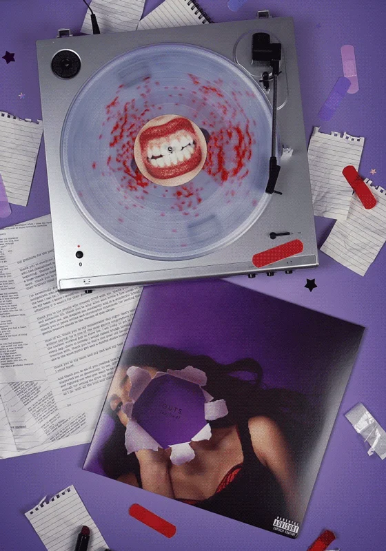 3-time GRAMMY® award winning recording artist olivia rodrigo returns with her new album, GU T S , out now via geffen records. available on limited edition blue vinyl. GU T S was recorded with producer daniel nigro, who also collaborated with her on SOUR , her chart-topping, 4x platinum debut album. “for me, this album is about growing pains and about trying to figure out who I am at this point in my life and exactly what I want to say in my songs." 1. all-american bitch 2. bad idea right? 3. vampire 4. lacy 5. ballad of a homeschooled girl 6. making the bed 7. logical 8. get him back! 9. love is embarrassing 10. the grudge 11. pretty isn’t pretty 12. teenage dream 13. stranger limited to 4 per customer.