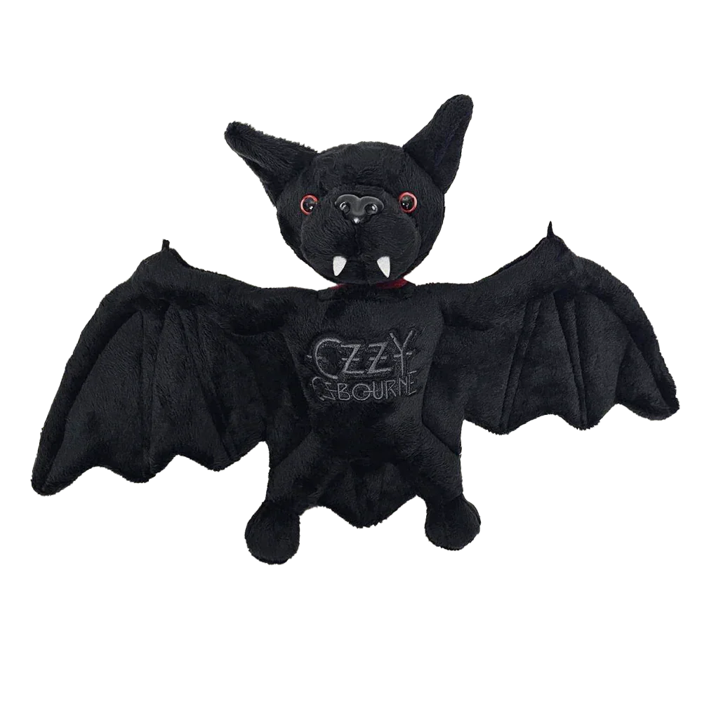 The Ozzy Osbourne Bat Plush is a web exclusive. This new Black-on-Black edition brings the legendary moment in rock history to life with this soft toy Plush Bat, featuring the Ozzy Osbourne logo and a Velcro detachable head. 12" tall Plush bat Detachable head