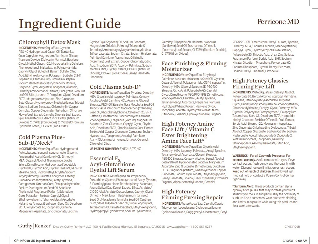 Cold Plasma Sub-D represents the culmination of Dr. Perricone's research to date. A non-invasive neck rejuvenation treatment with proven results, Cold Plasma Sub-D firms and tightens the appearance of sagging skin along the chin, jawline and neck areas while minimizing visible wrinkles. Cold Plasma Sub-D utilizes Dr. Perricone's unique delivery system and patented technology including DMAE to yield extraordinary results. With continued use, the neck takes on a firmer, more youthful appearance. This powerful formulation helps battle the look of double chin, sagging jowls, crinkly skin, and increased wrinkles.