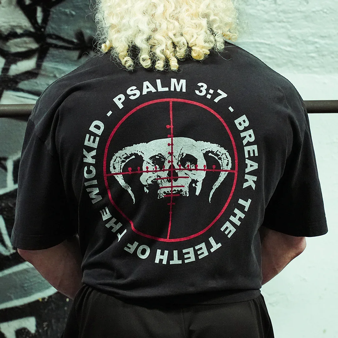 "Arise LORD, deliver me my God, strike all my enemies on the jaw, break the teeth of the wicked." - Premium 250gsm 100% Cotton fabric - Oversized Cut with Drop Shoulders - Durable and Based Christian Gymwear