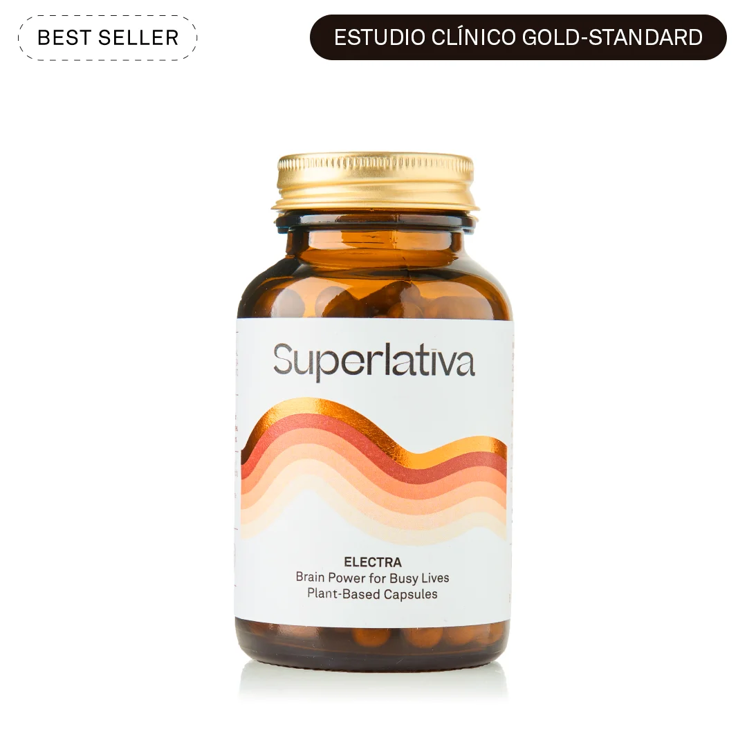 🛑 El estrés continuado puede ser terriblemente dañino para tu organismo. Niveles altos y sostenidos de cortisol (la hormona del estrés) pueden afectar tu humor, sueño, energía, piel, sistema inmune e incluso influir en tu peso. Electra es el Best Seller de Superlativa y puede ayudarte gracias a sus ingredientes activos: 🌿 Ashwagandha Sensoril®: Extracto de Ashwagandha patentado con beneficios probados para generar resistencia al estrés, mejorar niveles de cortisol y mejorar la calidad del sueño. 🧠 Bacopa: Propiedades neuroprotectoras y apoyo en la memoria. 🌱 Bayas de Schisandra y Goji: Niveles de energía estables y apoyo balance hormonal. 💊 Vitaminas B3 y B5: Apoyo al metabolismo y el rendimiento mental. “Con Electra, he encontrado la calma. Mi sueño y enfoque mental han mejorado drásticamente. ¡Adiós cansancio y estrés! Electra me ha dado una energía renovada." “MUY RECOMENDABLE A los 2-3 días notas los efectos, desaparece la angustia y puedes estar trabajando totalmente concentrada. A mi me ha funcionado. 2 cápsulas cada mañana con agua para comenzar tu día con serenidad y vitalidad. 👉 No dejes que el estrés te estrese // Descubre el poder de Electra. Pide Electra hoy y recíbelo en 24h - 48h.