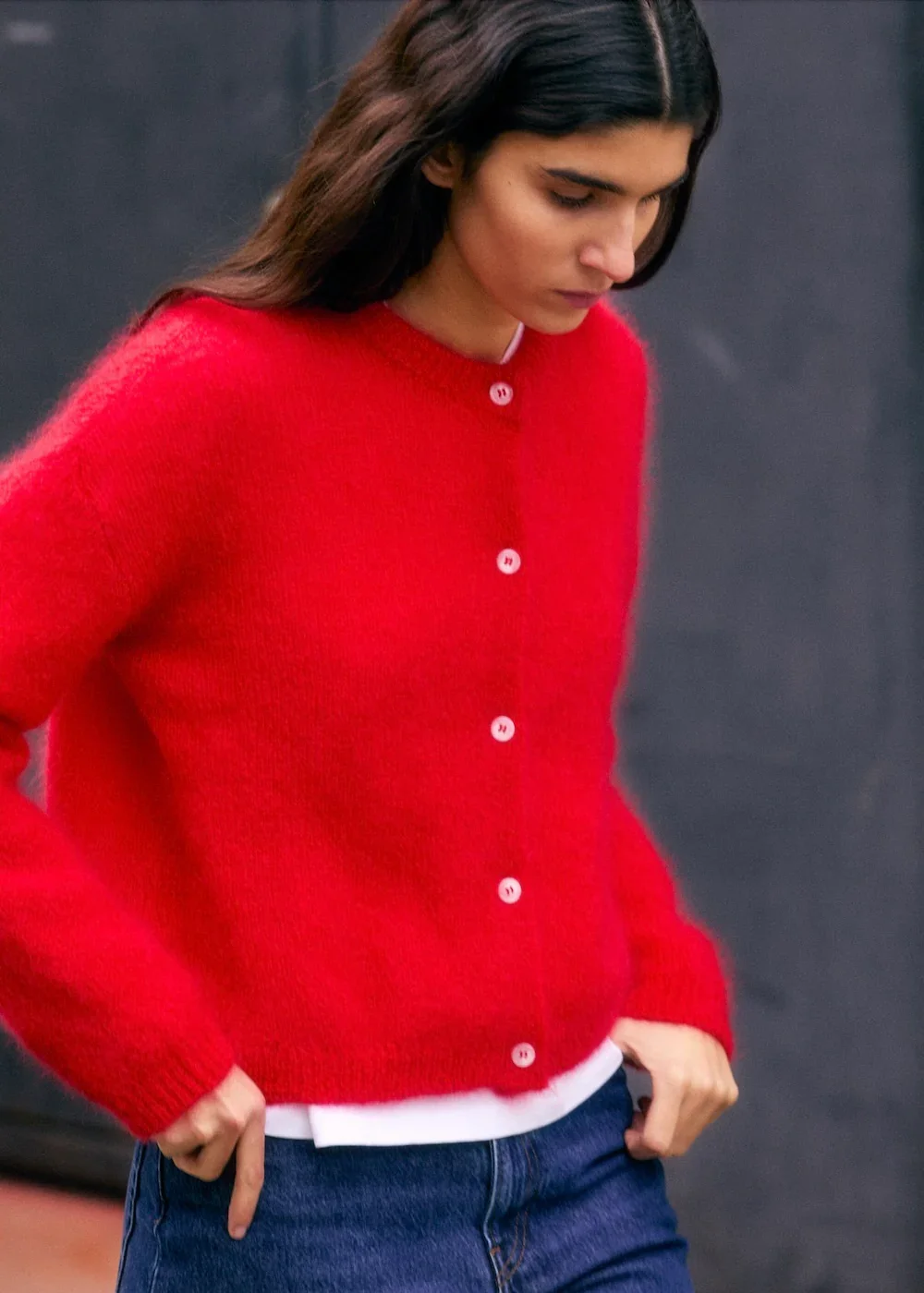 Le cardigan Olivia est un cardigan à col rond fluffy, doux et léger. Dessiné à Paris et fabriqué en Roumanie dans un atelier familial Fil italien certifié RMS et Mulesing free. 82% Superkid Mohair, 16% Polyamide, 2% Élasthanne Le cardigan Olivia taille plutôt petit. Si vous hésitez entre deux tailles, choisissez la taille au-dessus. Lala mesure 1m74 et porte une taille 2. Rebecca mesure 1m78 et porte une taille 3. Naomi mesure 1m70 et porte une taille 2.