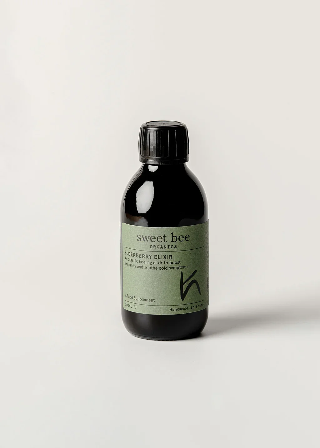 A protective blend, made with antioxidant rich elderberries and a warming mix of honey, turmeric, ginger, rosemary and cinnamon. As we leave the milder seasons behind us, keeping winter colds at bay becomes something of a project for us. Traditional cold and flu medicines are full of nasties, which can mask symptoms but don’t protect and prevent. It’s a no from us. As ever, we look to nature for the answer and draw on the tangy goodness of the small but mighty elderberry. Rich in antioxidants, vitamins, minerals, fibre, and potassium, a mazingly, one 145g cup of fresh elderberries is packed with 870 mg of vitamin A, 406 mg of potassium, 52.2 mg of vitamin C, 9 mg of folate, 55 mg of calcium, and 2.32 mg of iron. We create our deliciously fruity flavour by mixing our elderberries with other immune-friendly and vitamin-rich organic gifts from nature’s garden: Honey – for its antibacterial properties, natural sweetness and gorgeous viscosity Turmeric – for its potentially anti-inflammatory and antioxidant properties Ginger – for the anti-inflammatory gingerols and shogaols found in the root, which can help to relieve a sore throat, and kill rhinoviruses (the cause of the common cold) Rosemary – for its antimicrobial and antiviral properties as well as its potential to stimulate the circulatory system, encouraging blood flow to the brain and relieving head and body aches Cinnamon – for its ability to stop bacteria and fungi in their tracks We use <1% organic cognac as a natural preservative to keep the elixir fresh. 100% Organic. Zero chemicals. Handmade with love. Comes in 60ml, 100ml, 200ml, and 500ml glass bottles. We're strictly plastic free here; one planet, treat it well. Warning: Not suitable for children under 1 year old. We only use natural preservatives so this product has a 3 month expiry date. Store in the fridge even before opening and once used, finish within one month.