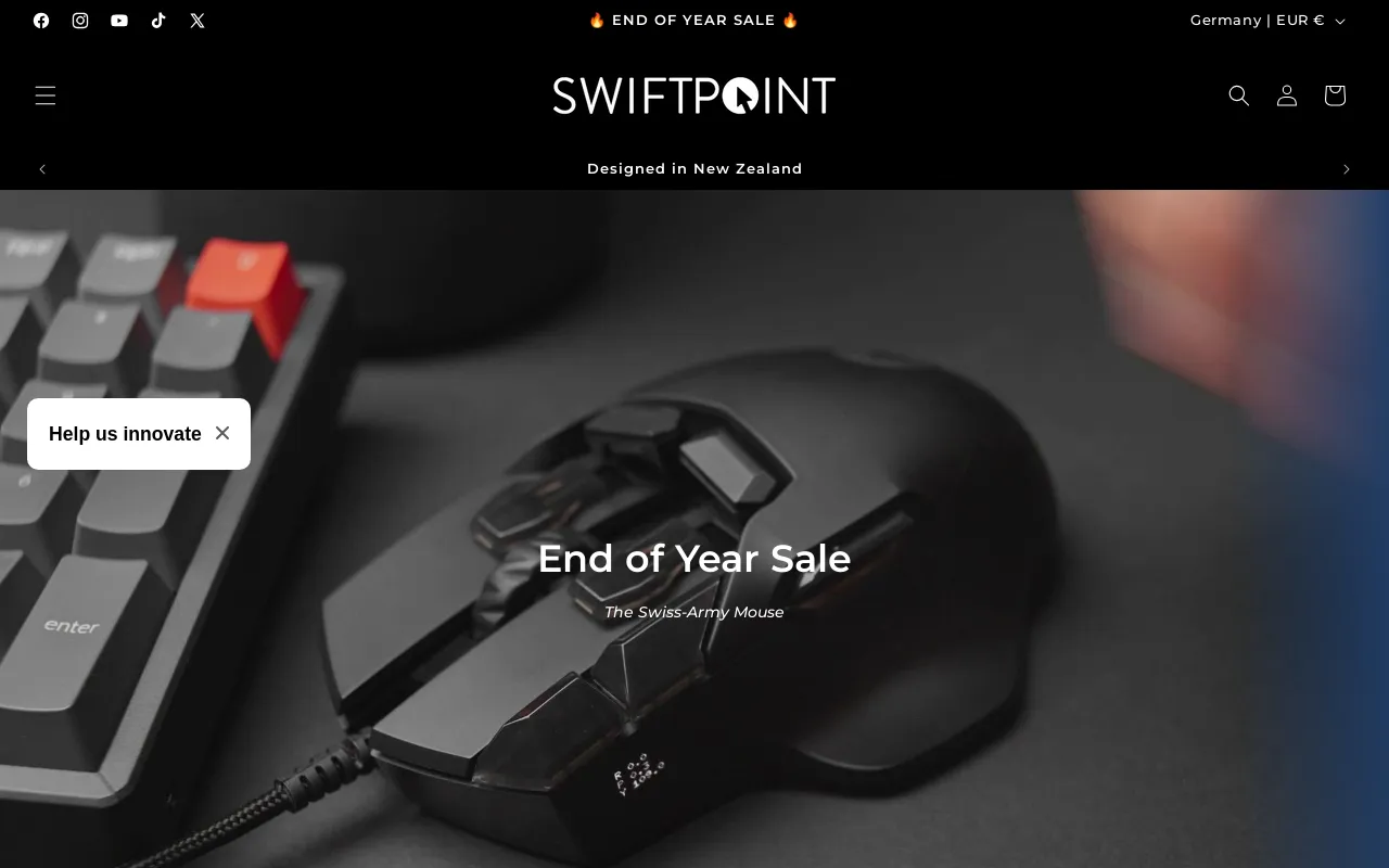 According to BrandSearch data, Swiftpoint (swiftpointltdv2.myshopify.com) is a New Zealand-based online store specializing in /Computers/Computer Hardware/Computer Peripherals, attracting 108K monthly visitors. The store is generating approximately $957K in monthly revenue according to BrandSearch estimates, with a catalog of 26 products. According to BrandSearch analysis, this brand ranks in the top 25% as a strong performer with above-average traffic in its category. Their technology stack includes Alia Popup: Email & SMS Popups, Shopify Collabs, and Sticky Add to Cart Upsell • EA for enhanced store functionality. Geographic distribution shows 37% of traffic from United States, followed by 7% from Canada.