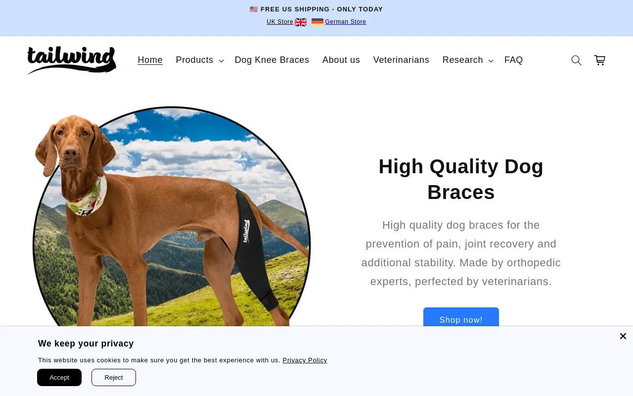 Tailwindpets produces orthopedic braces & accessories for elderly or injured dogs with joint problems like osteoarthritis, hip dysplasia, and cruciate ligament tears.
