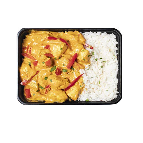 Voedingsstof Hoeveelheid Energie 494 kcal Koolhydraten 60 g Vetten 6 g Eiwitten 50 g Onze Butter Chicken met Rijst is niet alleen heerlijk, maar ook perfect voor jouw afvaldoelen. Met een laag caloriegehalte past deze smaakvolle maaltijd naadloos in een gezonde levensstijl. Geniet van de romige Butter Chicken-saus met malse stukjes kip, geserveerd met voedzame rijst. Laat je smaakpapillen dansen terwijl je jezelf trakteert op deze gezonde en smaakvolle optie! Allergenen: selderij, soja en melk Ingrediënten: Basmati rijst, Kipfilet, Tomatenpuree, Kokosmelk, Knoflook, Gember, Koriander, Komijn, Paprikapoeder, Kurkuma, Chilipoeder, Zout, Zonnebloemolie
