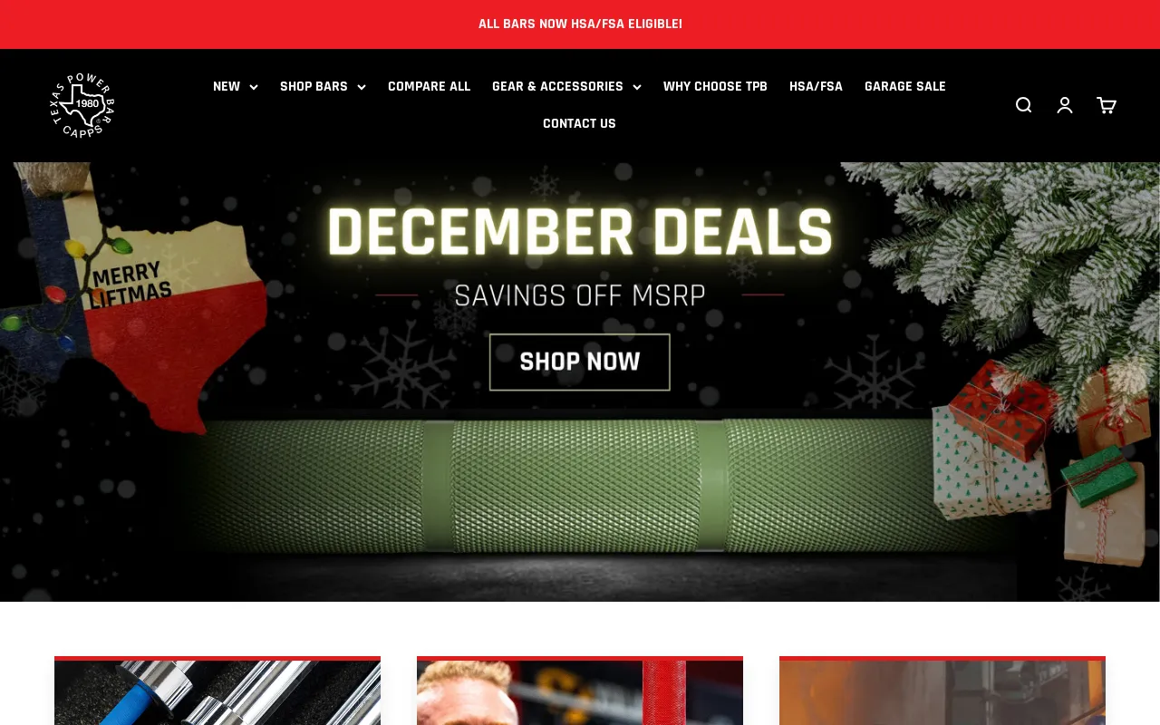 Texas Power Bars® is the proud home of the Original Texas Power Bar barbells. American-made, our iconic powerlifting & weightlifting barbells have set more records than any other in history. Shop powerlifting, Olympic, multi-purpose, and specialty bars plus strength equipment proven to outperform and outlast.