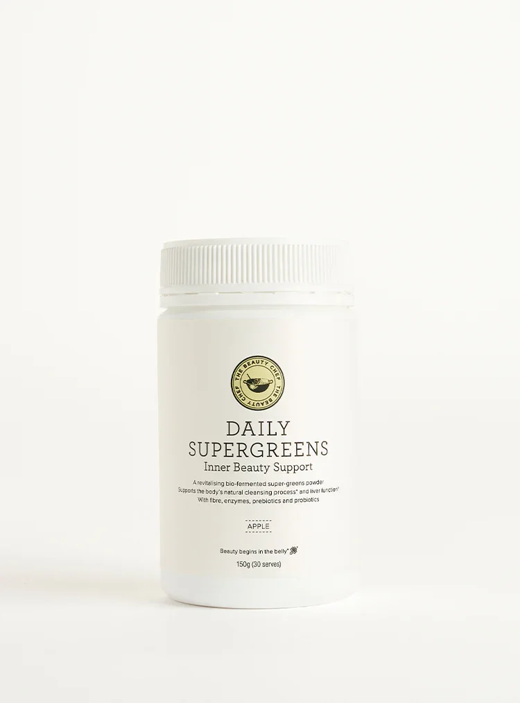 Eliminate. Detoxify. Purify . Who: Anyone whose skin is congested and would like to support liver and digestive function. Support the body’s natural detoxification process and cultivate smooth, clear skin with The Beauty Chef’s CLEANSE Inner Beauty Powder™. This advanced super-greens powder contains 45 Certified Organic and bio-fermented fruits, vegetables, seeds, roots, algae, grasses, purifying herbs and digestive enzymes to help alkalise and detoxify your body from the inside out. A delicious and easy way to enjoy a daily boost of cleansing and alkalising greens in a bio-available form, CLEANSE may also be used to help re-balance your body and gut microbiome during or after times of excess, or taken as part of The Beauty Chef’s 14-day Intensive Cleanse Program *. CLEANSE has been developed with The Beauty Chef’s science-led Flora Culture™ fermentation process to increase the bio-availability of the formula and create a live, broad-spectrum probiotic for a beautiful belly and clear, radiant skin. Rich in digestive enzymes, prebiotics and probiotics, CLEANSE is designed to support digestive balance and therefore improve detoxification. *Receive our 14-day Intensive Cleanse Plan with every purchase of CLEANSE Inner Beauty Powder™ or download here .