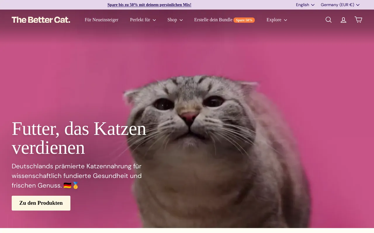 (🔊 Ton an für Schnurren) 😻 Was passiert, wenn man Futter für Katzen statt für Gewinne macht? 💸 🍖 Fleisch in 100% Lebensmittelqualität 🌿 Ergänzt mit natürlichen Prä- & Probiotika, Algenöl und Superfoods ✨ Gut geschützt: - Unterstützt die Verdauung - Schont die Nieren - Verlängert das Leben deiner Katze 🚫 Kein Getreide, kein Zucker – nur preisgekrönte Katzenernährung für die Gesundheit deiner Katze. 🎆 Mache das neue Jahr für deine Katze extra besonders. 🐾 Jetzt ausprobieren und 15% sparen! Code: TBC