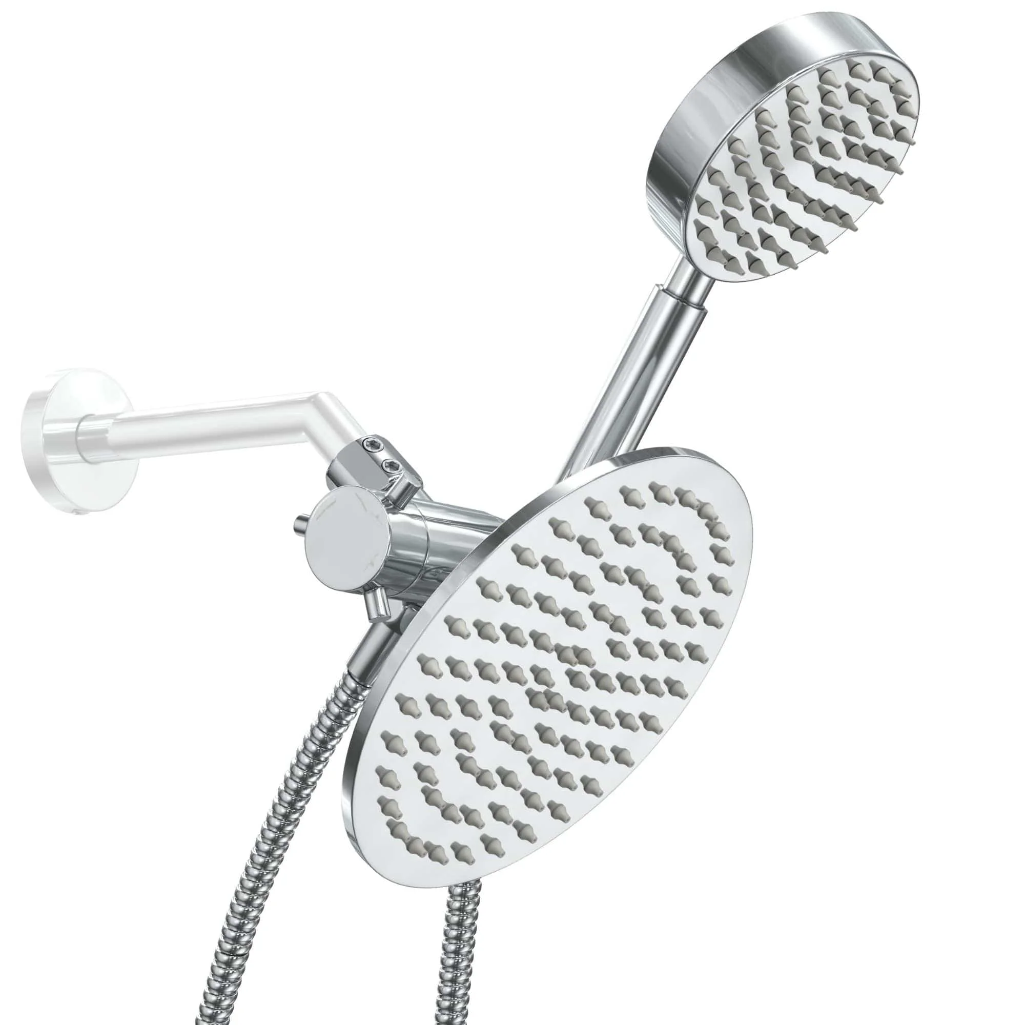 Upgrade your shower with HammerHead®’s 1-Spray Dual Shower Head Set, built for powerful performance and everyday versatility. The 8" rain shower provides wide, immersive coverage while the handheld delivers strong, focused pressure, all managed through a smooth diverter for quick switching or simultaneous use. Crafted from solid metal components, this setup delivers durability, control, and reliable water performance for any household.