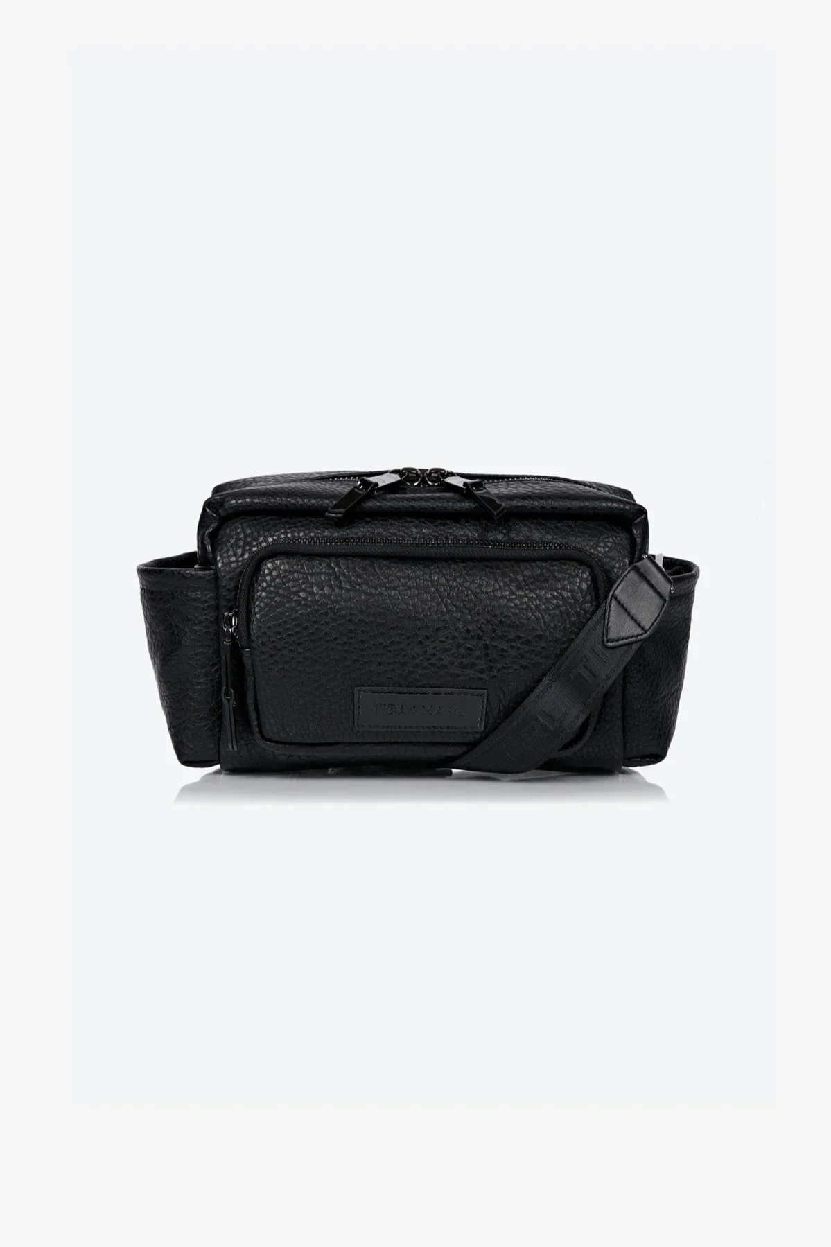 The EVERYTHING bag. A changing bag. A stroller organiser. A shoulder bag. Axel has you covered. Spacious enough for your baby essentials and perfect for when you want to travel lighter + smarter. Axel has been constructed from weather proof, rubberised PU and set back to sleek black hardware, and 100% recycled lining. This hybrid style can be easily converted from bag to buggy organiser with its detachable branded woven cross-body strap and detachable velcro stroller straps. Featuring three exterior zip pockets, and two slip pockets on the reverse large enough to carry bottles, plus a highly organised interior that includes an insulated bottle sleeve - this new addition to our range puts function and style as equal denominators.