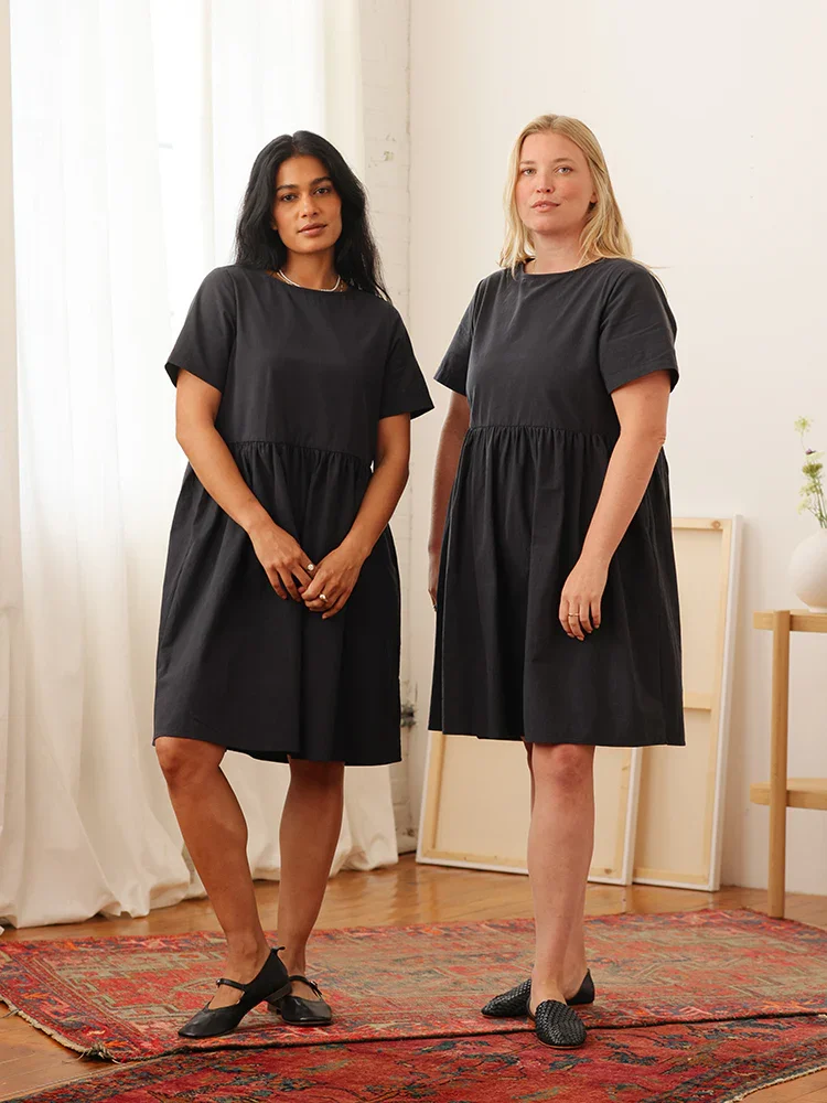 Introducing the Nell Dress – a fresh take on our best selling Nico Dress, with a playful twist. We listened to your love for the Nico's fit and created the Nell with a shorter, breezier length and functional button front. This is your effortless throw-on-and-go little black dress, blending ease with a touch of whimsy. Just like the Nico, it's crafted for comfort and style in a silhouette that’s as versatile as it is pretty. Perfect for sunny afternoons or a casual night out, it feels like it was made for you – because it is.