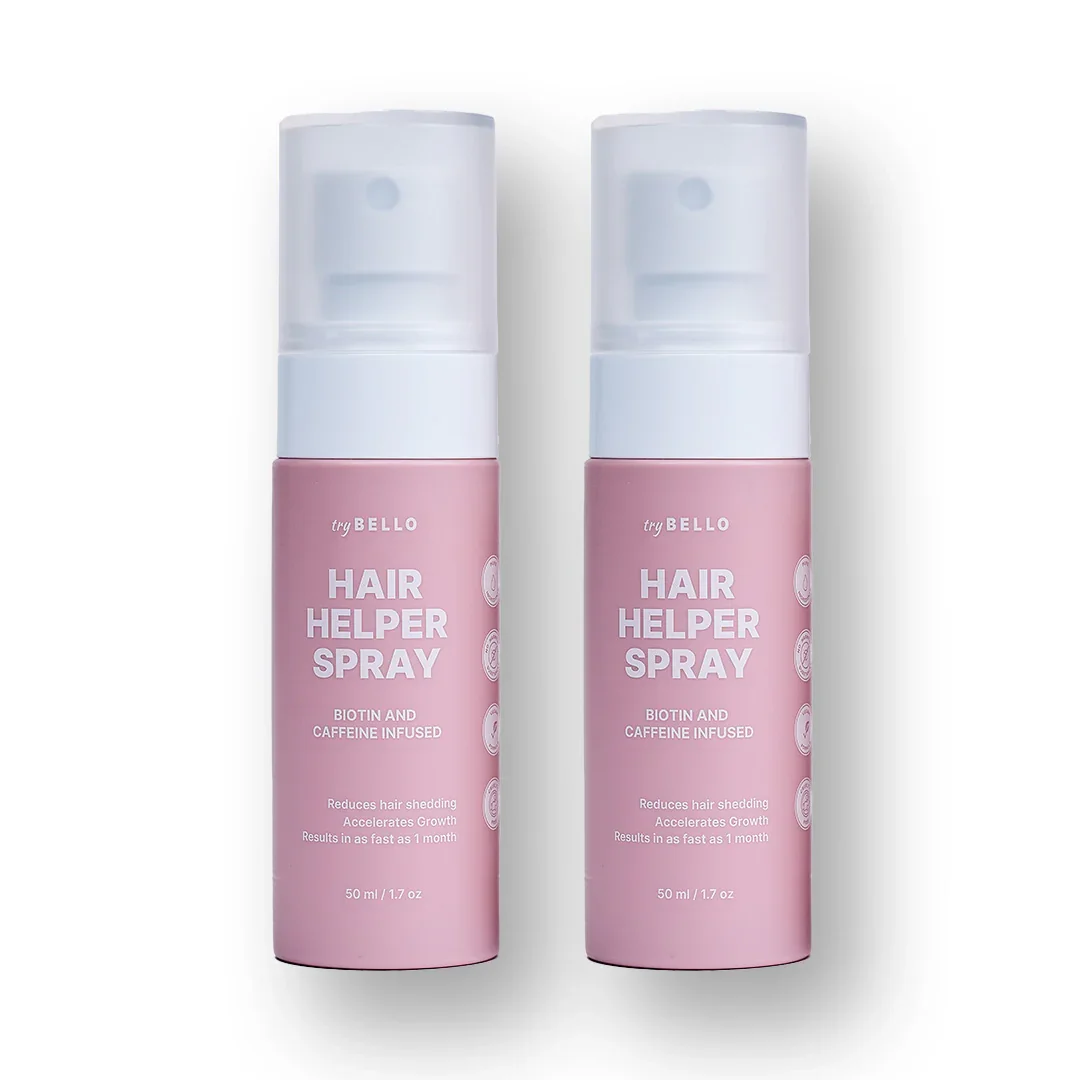 Nourishes and stimulates the growth of thicker, fuller, and more natural hair, giving you luscious locks that shine without any styling products. Bello Hair Helper Spray nourishes and stimulates the growth of thicker, fuller, and more natural hair, giving you luscious locks that shine without any styling products. Order 2 Or More Hair Helper Sprays And Receive One Eyebrow Serum FOR FREE - First 100 Customers Only Revitalizes the growth of your hair follicles Denser, voluminous hair Visible effect after only 4 weeks No hormones, silicones, parabens Plant-based active ingredients, antioxidants and amino acids Completely free of gluten 120-Day Hair Growth Guarantee USA based startup 🇺🇸