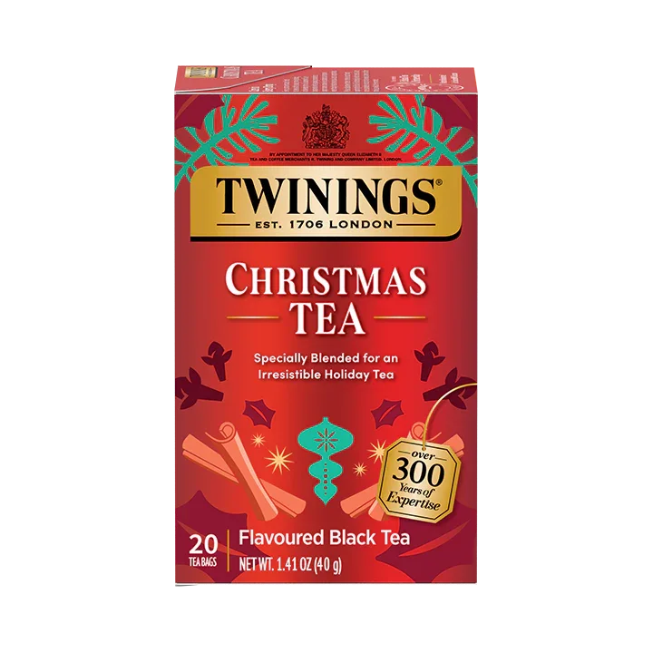 Twinings is delighted to offer this limited edition winter tea that celebrates the joy and spirit of the holiday season. Our Christmas Tea™ is an aromatic blend that combines the finest black teas with the traditional flavours of cinnamon and clove. Create a merry moment with Twinings Christmas Tea™ . Expertly blended with the savoury flavours of cinnamon and clove, this fine black tea is sure to bring you holiday cheer with its warm, spicy taste and soothing aroma. Ingredients Black tea Natural flavour