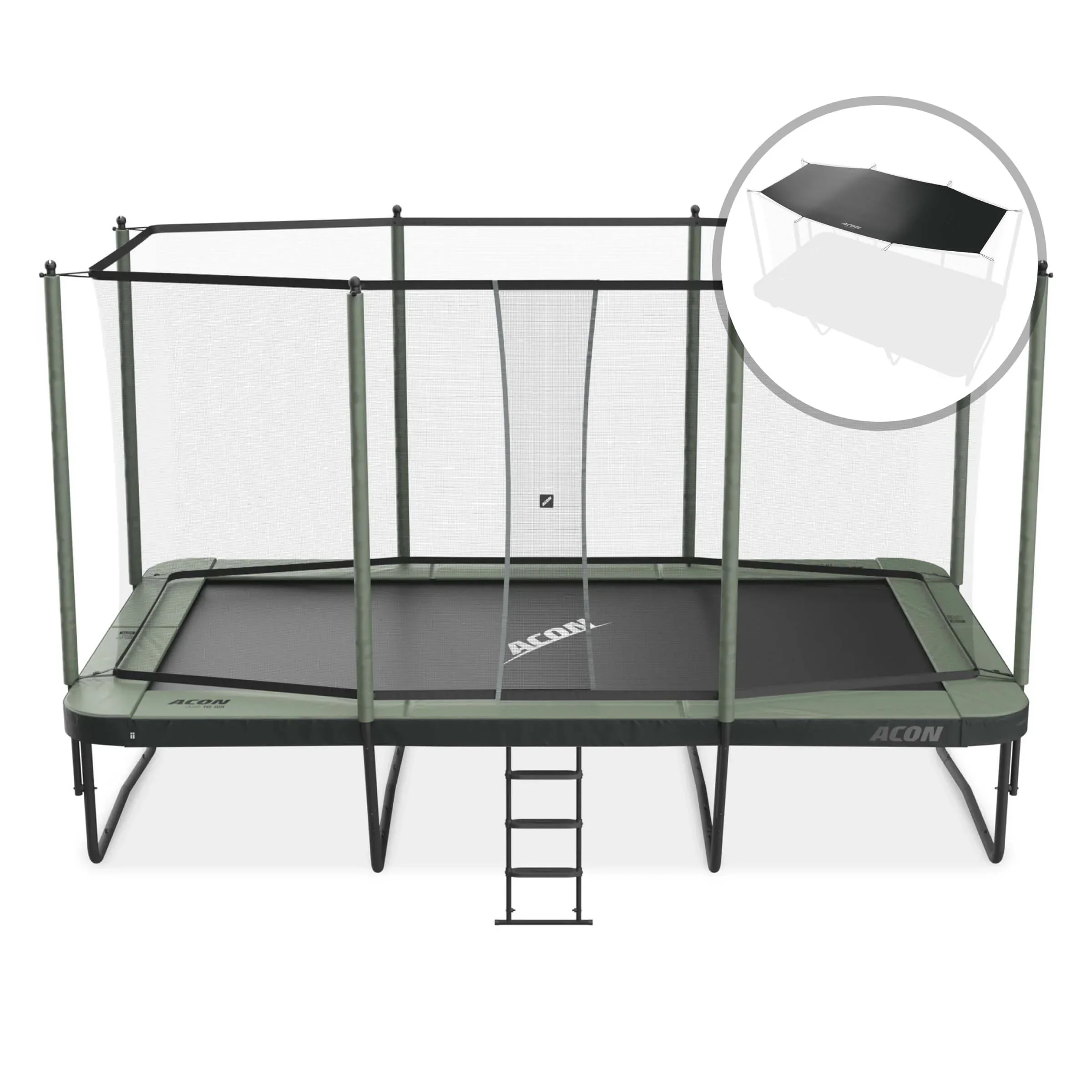 The 16 HD Rectangular Trampoline with Net and Ladder is our iconic rectangular model—now upgraded with a dual-layer SafeMat protection, iconic ACON bounce, and industry-leading safety features. Built for safer family play with unbeatable mix of safety, space, and endless fun in every season.