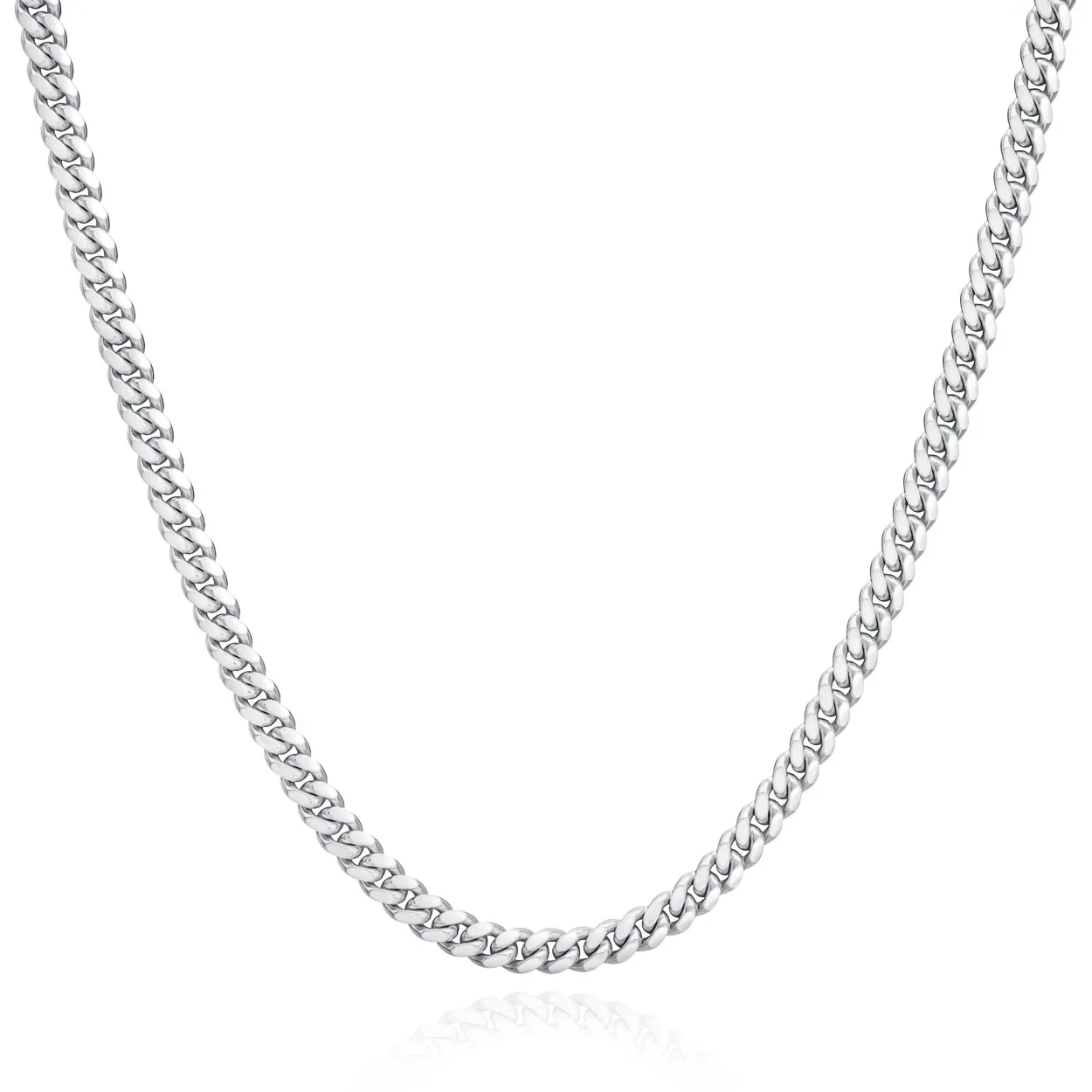 The Miami Cuban Chain has continued to be one of the hottest necklaces. Built with beautiful tightly spaced links which are all soldered together one by one, making our cubans truly the best of the best. Width: 3.5mm Material: Solid 925 Sterling Silver Finish: High polish with Rhodium Weight: 12-19 grams (18-26 inch) Clasp: Classic lobster Quality: Made in Italy