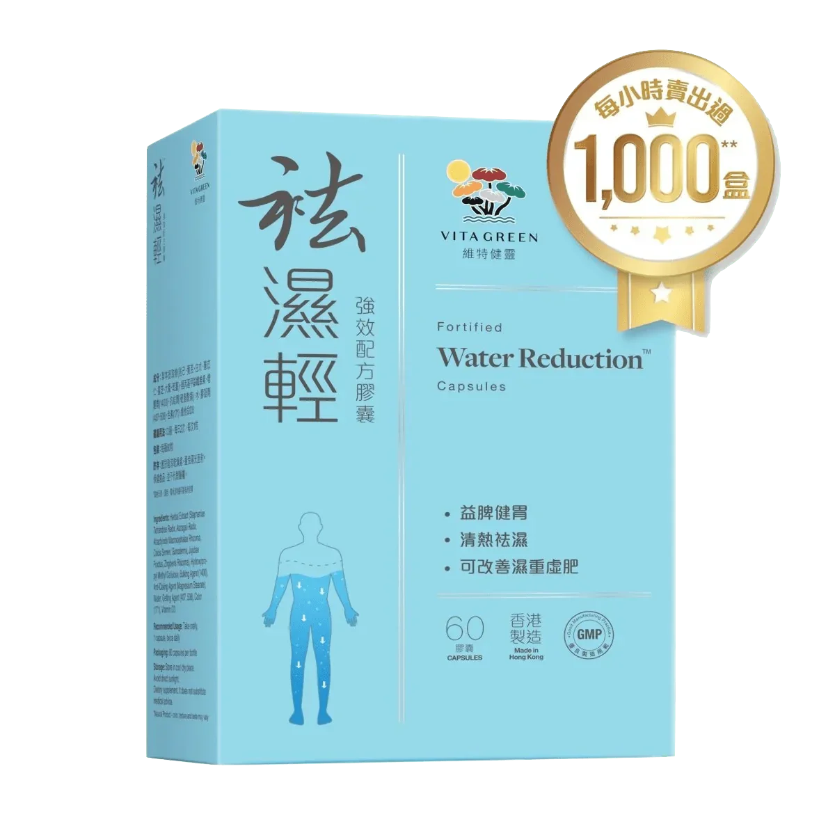 袪濕輕 - 特有全天然「健脾袪濕強效配方」 - 益脾健胃、清熱袪濕、袪水消腫 - 每日2粒,輕鬆踢走濕重虛胖 - 適合濕熱及寒濕所有體質 - 短期服用:解決濕重虛肥症狀 - 長期服用:調和及平衡體質 - 無西藥副作用 - 不含任何動物成分 適用人士 •適合所有體質,包括濕熱、濕熱、寒濕及上熱下寒 •適合容易疲倦、氣脹身重、脾胃較弱、工作過勞、缺少運動、長時間處於冷氣地方的人士 用量 •調理:口服,每日2次,每次1粒 (30天份) •加強:口服,每日2次,每次2粒 (15天份)