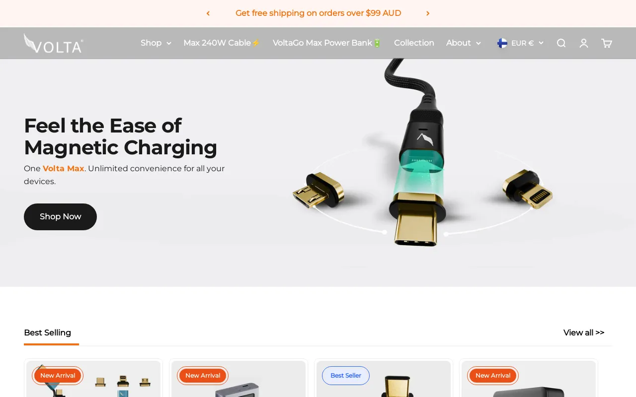 VOLTA (volta-charger.myshopify.com) is a Australia-based online store specializing in /Computers/Electronics & Electrical/Power Supplies. The store is generating approximately $733K in monthly revenue according to BrandSearch estimates, attracting 83K monthly visitors, with a catalog of 6 products. This brand ranks as a growing store with steady visitor engagement in its category. Their technology stack includes Blockify Fraud Country Blocker, Blockify Checkout Rules & COD, and Kaching Bundle Quantity Breaks for enhanced store functionality. Geographic distribution shows 18% of traffic from United States, followed by 8% from Australia.