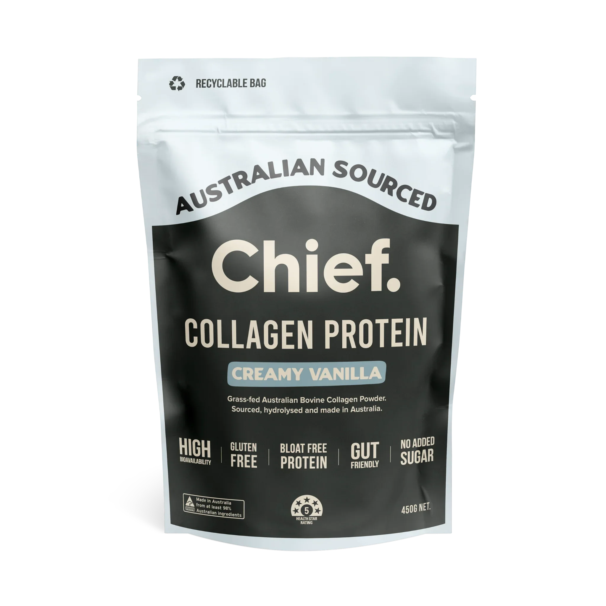 Increase your daily protein intake while supporting glowing skin, stronger nails, muscle recovery, joints and tendons, and your gut health with clean Australian Collagen Protein! An odourless, tasteless, dairy free protein source. Unflavoured - nothing but pure collagen. 100% Hydrolysed Grass-fed Australian Bovine Collagen (please note we can't always guarantee 100% Australian sourced, see Nutrition Information below for more information) Type I and III collagen with an average molecular weight <1kDa (highly bioavailable) Tested to be free from heavy metals, pesticides and herbicide such as Glyphosate. No sweeteners or sugar alcohols. Can be added to anything without affecting taste. Great with yoghurt, in your smoothie, or with your coffee! You can even cook and bake with it. Suitable for the whole family (a great way to add extra protein). Better for those with sensitive stomachs than other proteins such as whey.