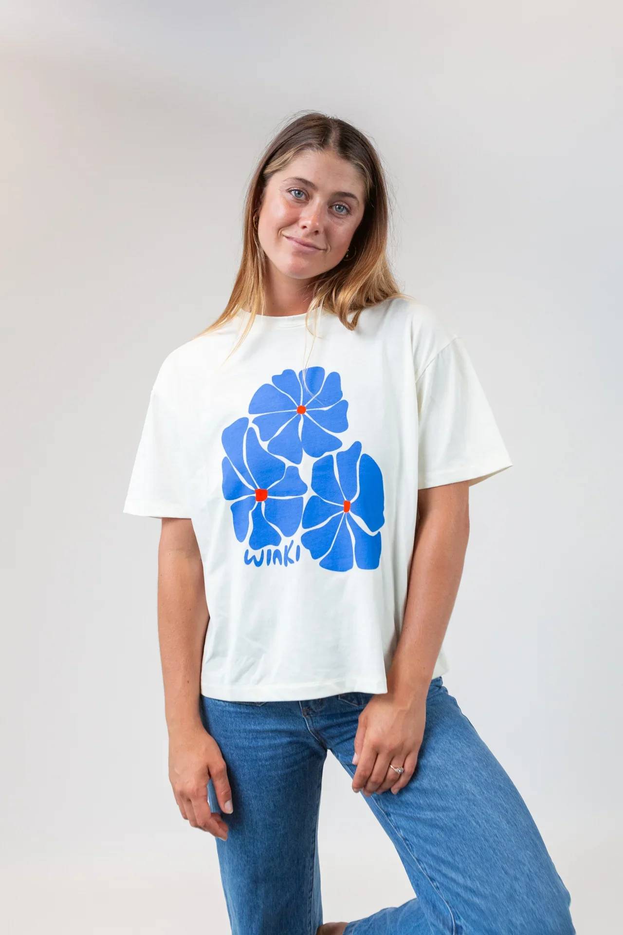Our much-loved Winki Tee is back! This time in our updated boxy, oversized fit, featuring an in-house Winki artwork (aka a late-night doodle we decided deserved her very own tee). Each piece is handmade with love by survivors of human trafficking in the Philippines and locally screen-printed on the Northern Beaches. As a special touch, the makers have sewn in a handmade tag with their name on the inside of the Tee. We wanted to open up the opportunity for you to read about and connect with your maker on the other side of the world. To read their incredible stories, head over to the Meet Your Maker page. Details: CVC soft cotton fabric and ribbing Oversized fit Print on front of tee Sizing: Ella is 168cm tall and wears size small. Note: For the wellbeing of our makers and our planet, this style is produced in limited numbers.