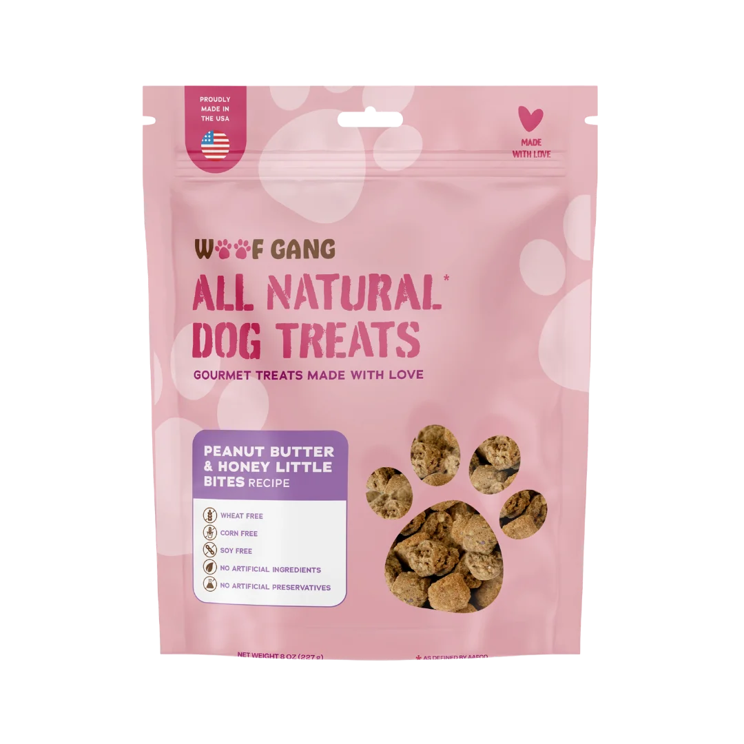 All Natural The Woof Gang Bakery line of all natural dog treats are perfect for your furry friends. These simple, delicious, and all natural treats are made with love and with only the highest quality ingredients. They are proudly made in the USA, and free from wheat, corn, and soy INGREDIENTS Oat Flour Rye Flour Apple Puree Cold-Press Canola Oil Peppermint Oil Water