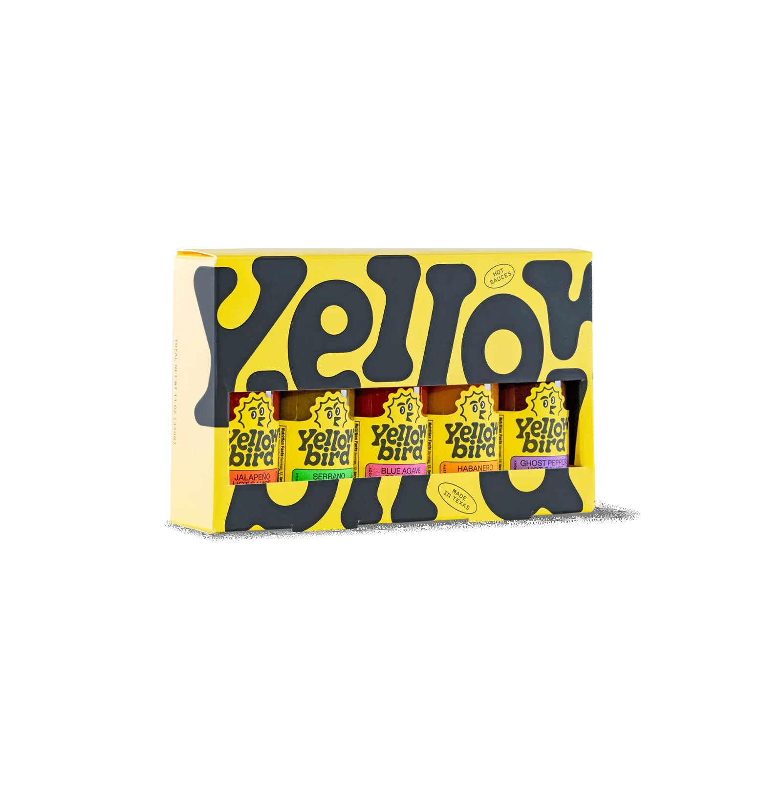 A 5-Pack Variety Set of Yellowbird Classic Hot Sauces made with farm-fresh ingredients and subtly sweetened with organic cane sugar. This set comes in an array of sizes and heat levels, each with a unique blend of fruits and veggies including rich caramelized onions, bright and tangy citrus, and of course a plethora of spicy peppers.