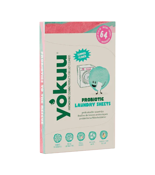 Our laundry sheets are packed with 1 billion probiotic cleaning helpers that get deep into the fibres of your clothes. No drips, no dosing, no heavy bottles. Just throw a sheet in with any wash - hot or cold, colour or white. Each box contains 32 sheets - enough for up to 64 washes. Simply tear a sheet in half for smaller loads. Clean Ingredients: 65% naturally derived and 100% biodegradable Probiotic-powered: 5 strains of good bacteria that support fabric freshness and odour control Safe for home: Free from optical brighteners, phosphates, enzymes of unknown origin, and microplastics Lightweight: Compact, waterless strips in recyclable paper packaging